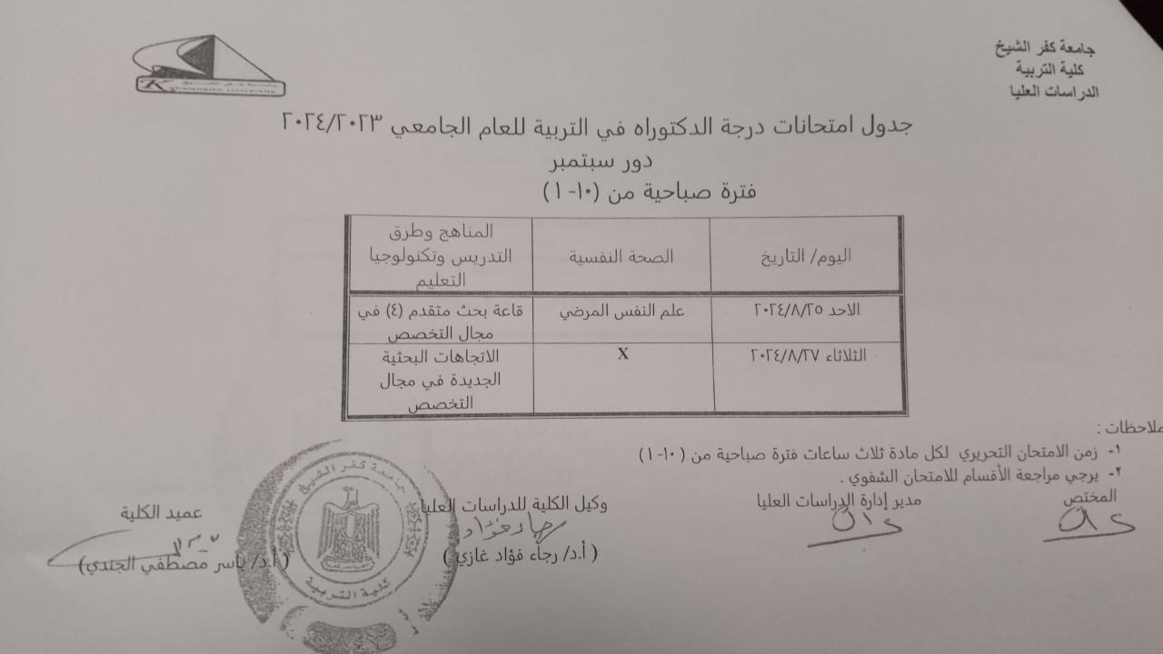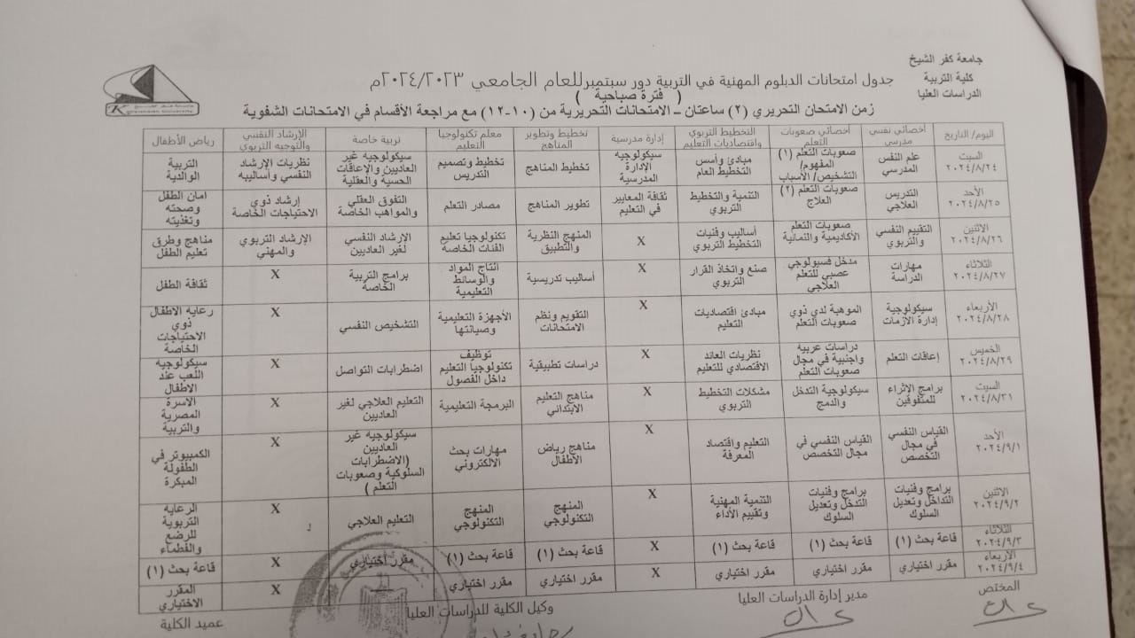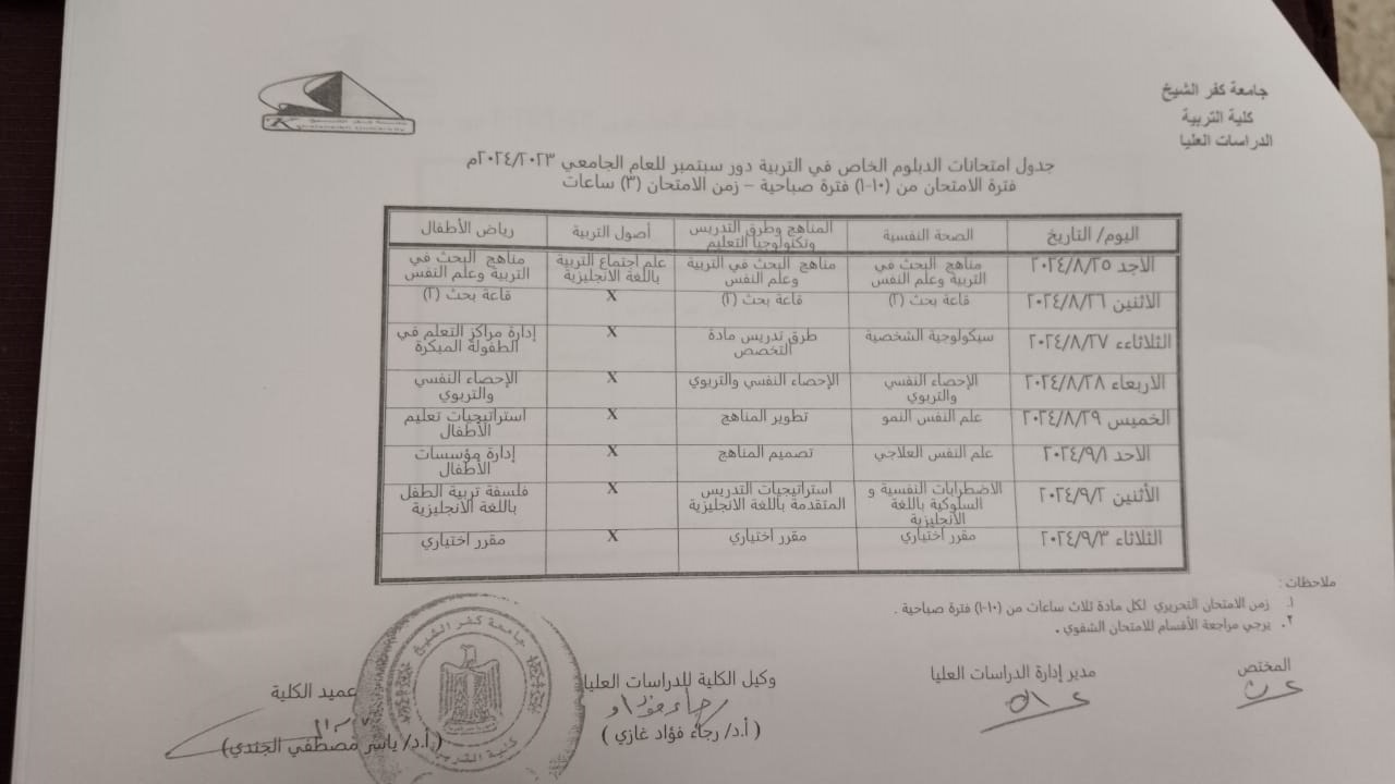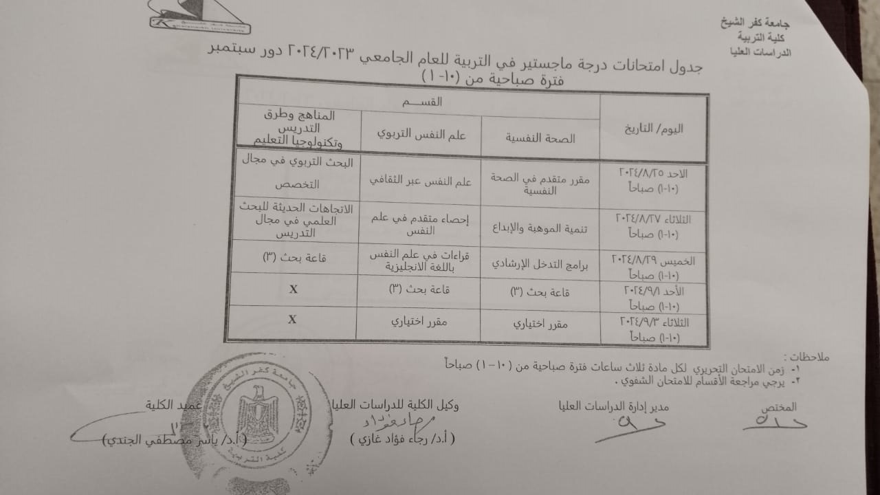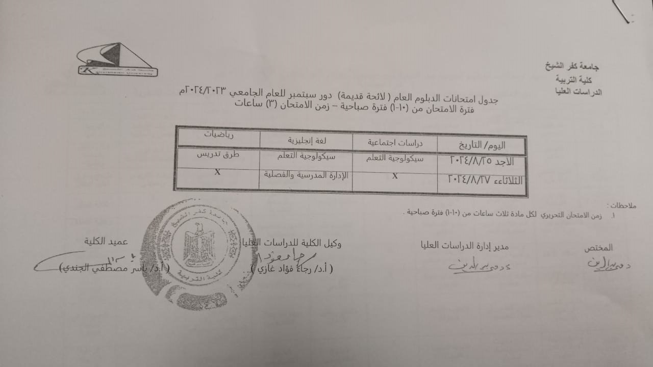 جداول امتحانات الدراسات العليا دور سبتمبر... للعام الجامعي 2023/2024م.
