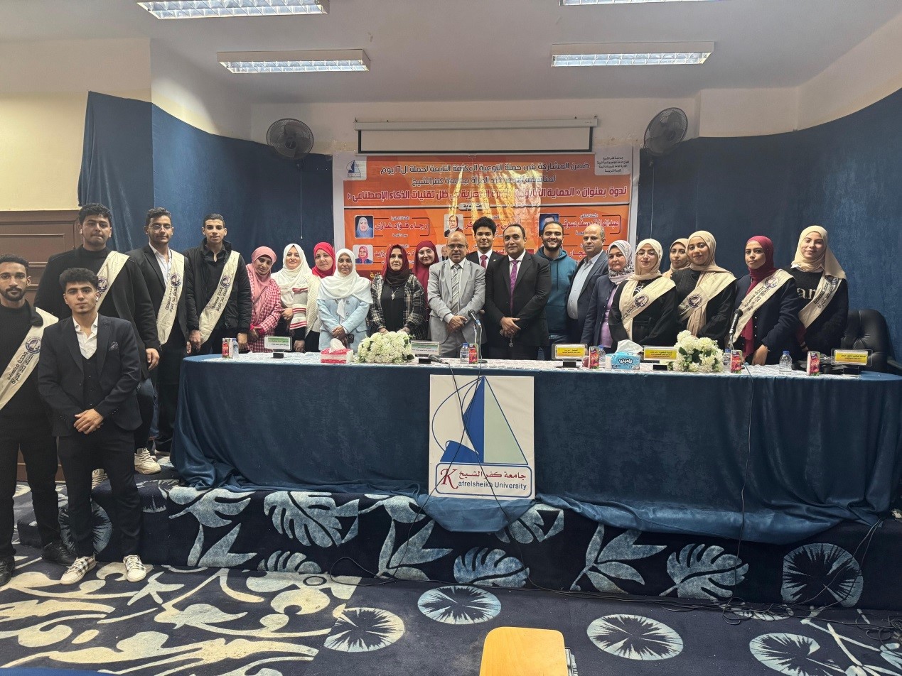 عقدت كلية التربية جامعة كفر الشيخ اليوم الأحد الموافق 8/12/2024م، الساعة الواحدة ظهراً، ندوة توعوية بعنوان " الحماية القانونية للأسرة المصرية فى ظل تقنيات الذكاء الاصطناعي"، وذلك ضمن المشاركة في حملة الـ 16 لمناهضة العنف ضد المرأة حاضر فيها معالى المستشار على ويح رئيس محكمة كفر الشيخ الابتدائية وذلك بحضور كلا من :