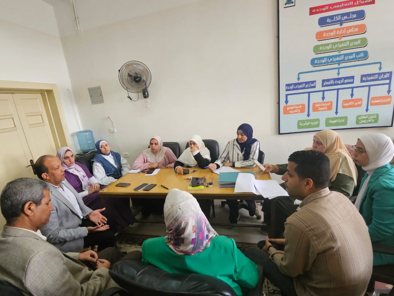 ا.د السيد عويضة رئيس لجنة التدريب .د ام السعد حتاته نائب رئيس وحدة ضمان الجودة.. وأعضاء لجنة التدريب ممثلين لاقسام الكلية