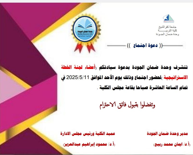في صباح يوم الأربعاء الموافق 7 أبريل 2025، وفي جو يسوده التفاؤل والعزيمة، عقد السيد الأستاذ الدكتورمحمود إبراهيم عبد العزيز عميد كلية التربية جامعة كفر الشيخ اجتماعًا موسعًا مع السادة أعضاء الهيئة المعاونة من المدرسين المساعدين والمعيدين، جاء ذلك بمناسبة ختام الفصل الدراسي الثاني للعام الجامعي 2024 /2025م، وذلك استعدادًا لانطلاق الامتحانات النهائية وحرص كلية التربية على رفع كفاءة الأداء الأكاديمي والإداري،