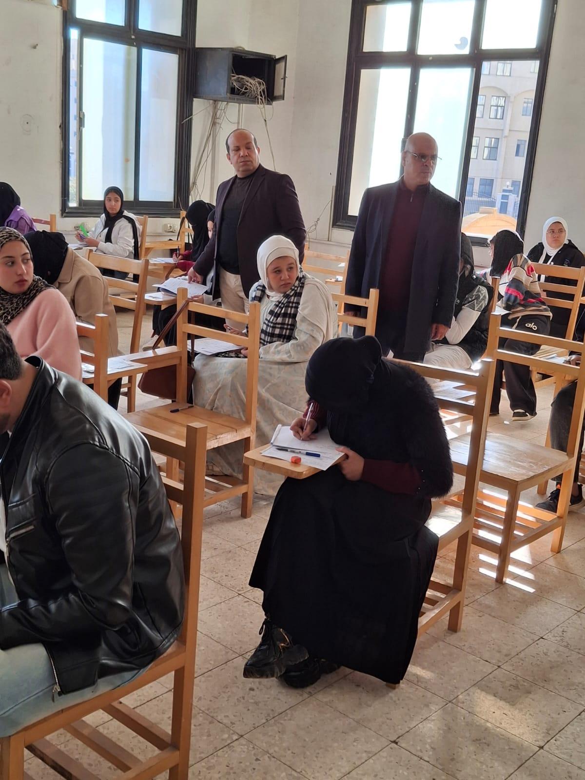 في إطار الحرص على المتابعة الميدانية لسير امتحانات الفصل الدراسي، قام السيد الأستاذ الدكتور/ محمود إبراهيم عبدالعزيز – عميد الكلية، ويرافقه السادة وكلاء الكلية، بجولة تفقدية داخل لجان الامتحانات، وذلك يوم السبت الموافق 27 / 12 / 2025. وهدفت الجولة إلى الاطمئنان على حسن سير العملية الامتحانية، والتأكد من توافر المناخ المناسب للطلاب داخل اللجان، ومتابعة الالتزام بالتعليمات والضوابط المنظمة لأعمال الامتحانات. وشملت الجولة تفقد عدد من لجان الامتحانات بمختلف الأقسام، حيث تم التأكد من توافر الهدوء والانضباط، وحسن تنظيم اللجان، والتزام القائمين على أعمال الامتحانات، مع التأكيد على سرعة التعامل مع أية ملاحظات قد تطرأ بما يضمن انتظام سير الامتحانات. وفي ختام الجولة، أكد السيد عميد الكلية على أهمية الاستمرار في المتابعة اليومية، مشيدًا بجهود أعضاء هيئة التدريس والعاملين، ومتمنيًا لأبنائه الطلاب دوام التوفيق والنجاح.