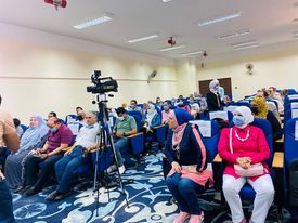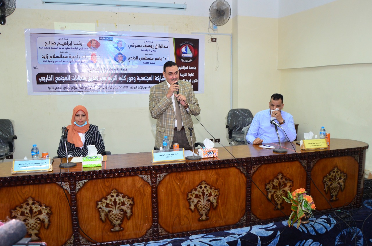بحضور أ.د رجاء غازي وكيل الكلية للدراسات العليا والبحوث، وأ.د محمود طه وكيل الكلية لشئون التعليم والطلاب ولفيف من السادة أعضاء هيئة التدريس بالكلية وبمشاركة قطاعات متنوعة من المجتمع الخارجي ..قطاع التعليم الابتدائي والاعدادي والثانوي توجيه وادارة ومعلمين ..والأكاديمية المهنية للمعلمين ..والهيئة العامة لمحو الأمية وتعليم الكبار وقطاع الثقافة ممثل في المركز الثقافي بكفر الشيخ ونادي الأدب ..والتضامن الاجتماعي ..والقطاع الصحي ..والجمعيات الأهلية وبحضور النائب/ عز جودة بمجلس الشيوخ عن محافظة كفر الشيخ والأستاذ أحمد الأسيوطي مدير عام التعليم الثانوي، والأستاذ مصطفى مرعي مدير الأكاديمية المهنية للمعلمين بكفر الشيخ، ولفيف من قيادات التربية والتعليم وتعليم الكبار والتضامن الاجتماعي ومؤسسات المجتمع المدني والثقافي ونادي الشعر العربي بالمحافظة.