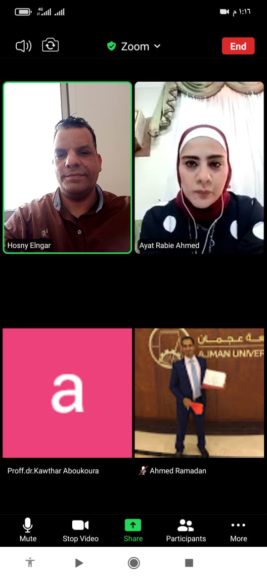 1- باحثة ماجستير. آيات الماضي (أون لاين لظروف صحية).