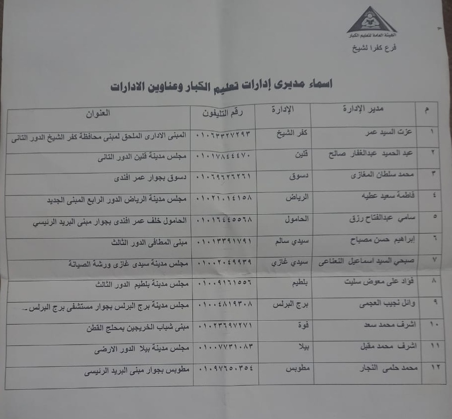 إعلان مهم !!... أسماء السادة مديري إدارات تعليم الكبار وعناوين الإدارات