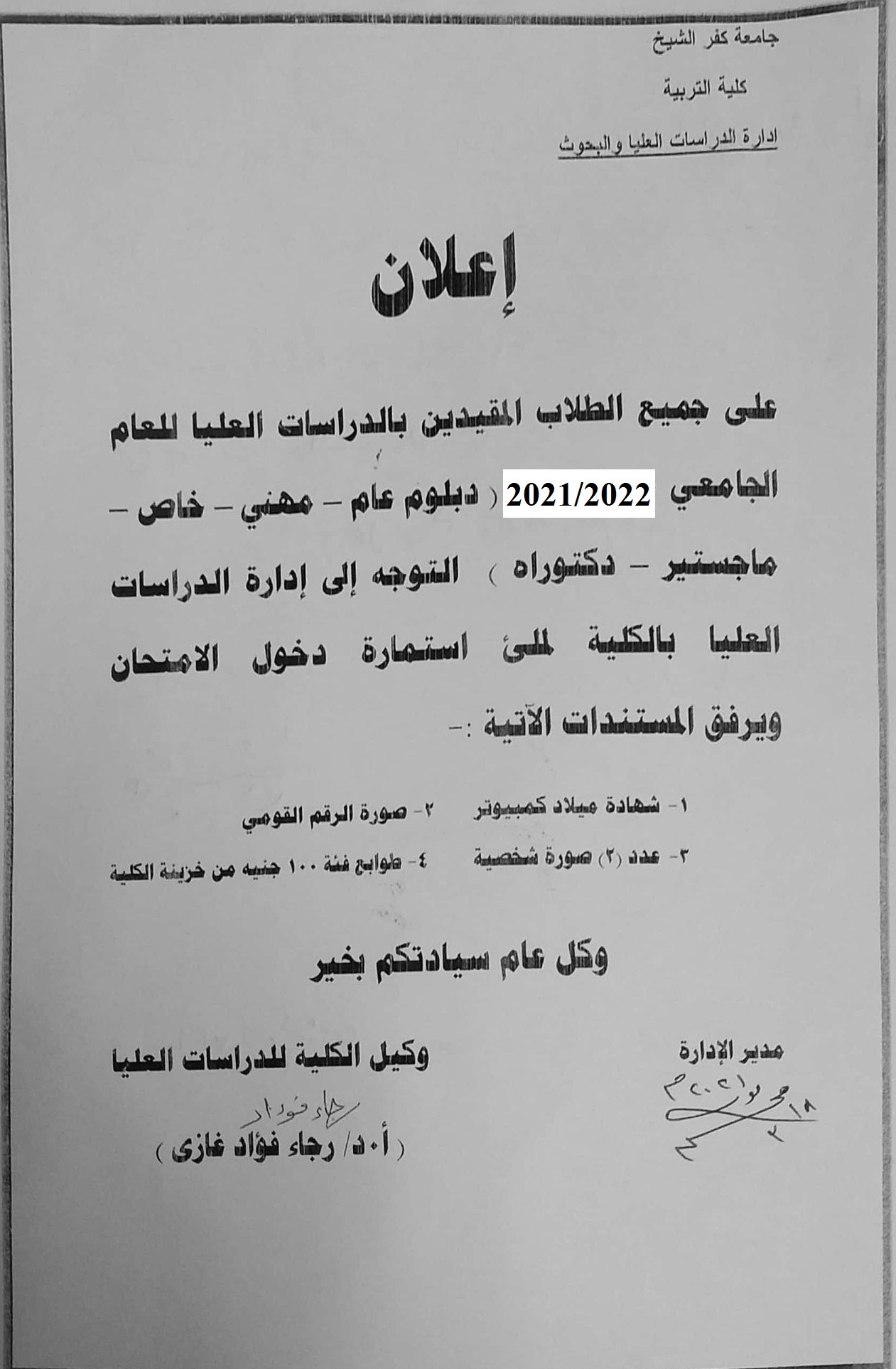 استمارة دخول الامتحان للطلاب المقيدين بالدراسات العليا للعام الجامعي 2021-2022م