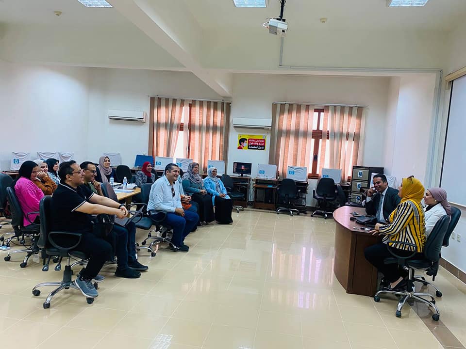 وقامت الدكتورة مي رمضان بتوضيح اهمية المنصة والمميزات التي تقدمها وحثت اعضاء هيئه التدريس علي ضرورة رفع مقرراتهم لبداية العمل عليها.