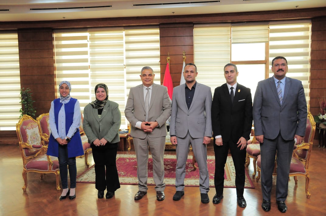 Dr. Abdel-Razek Desouki, President of the University, received Colonel Osama El-Desouki, Director of the Office of a Decent Life in Kafr El-Sheikh, Dr. Islam Jabr, General Coordinator of “Decent Life” in the governorate, and Dr. Mahitab Magdy, Deputy General Coordinator of Kafr El-Sheikh Governorate.