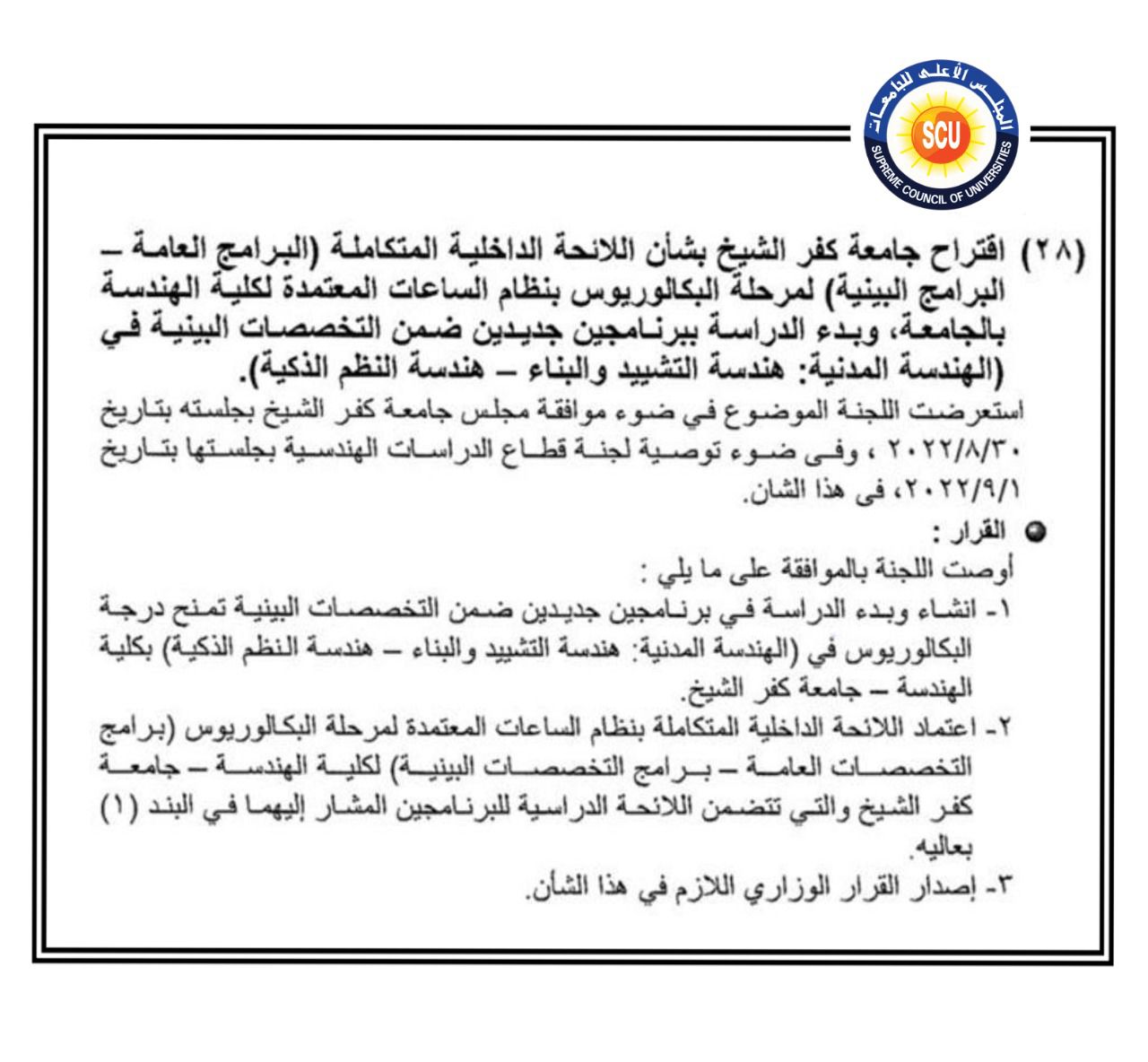 Today, Saturday, 9/24/2022, the final approval of the internal regulations for the bachelor's stage was completed, and approval to start the new distinctive programs