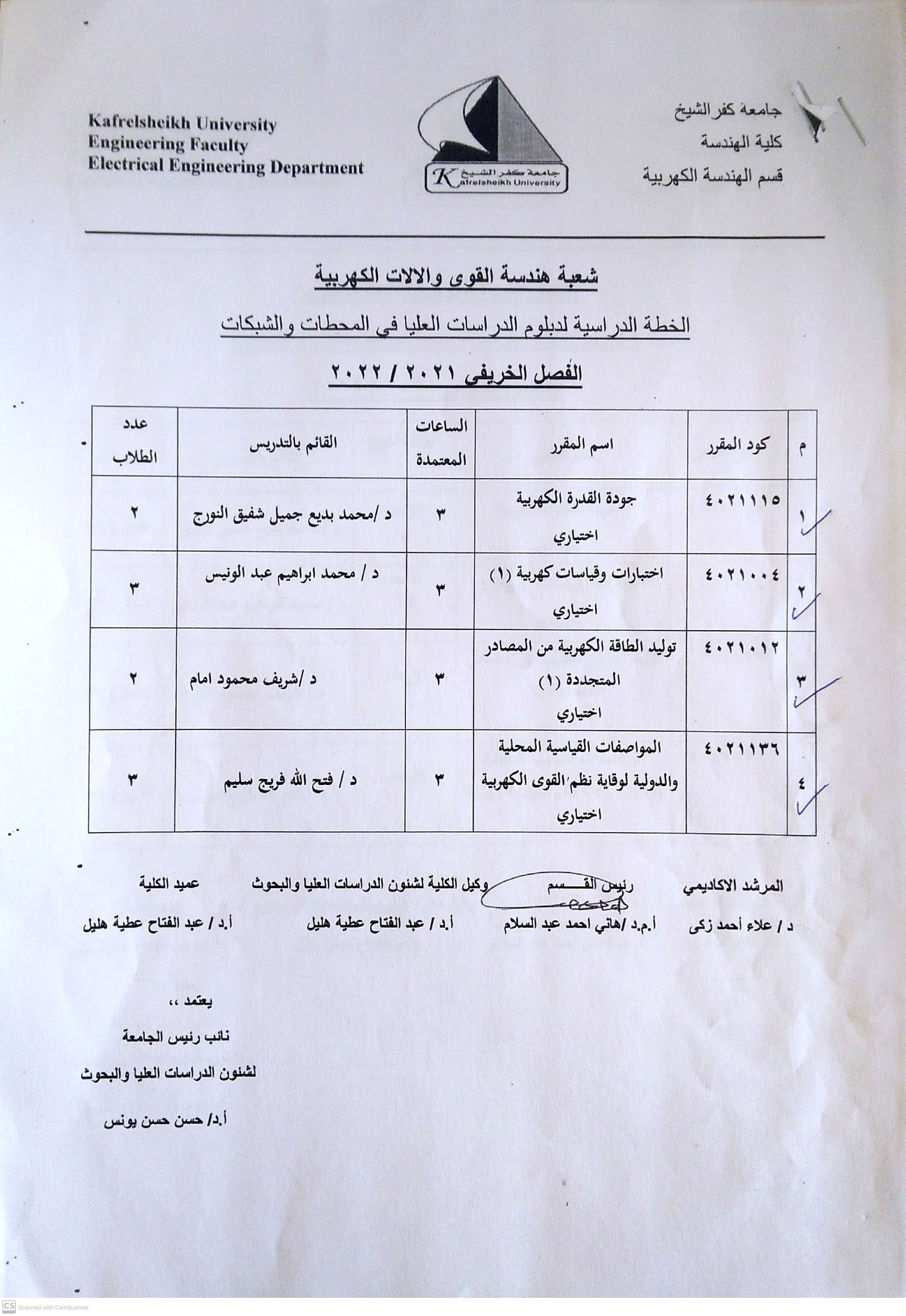 الخطة الدراسية للفصل الخريفى 2022/2021