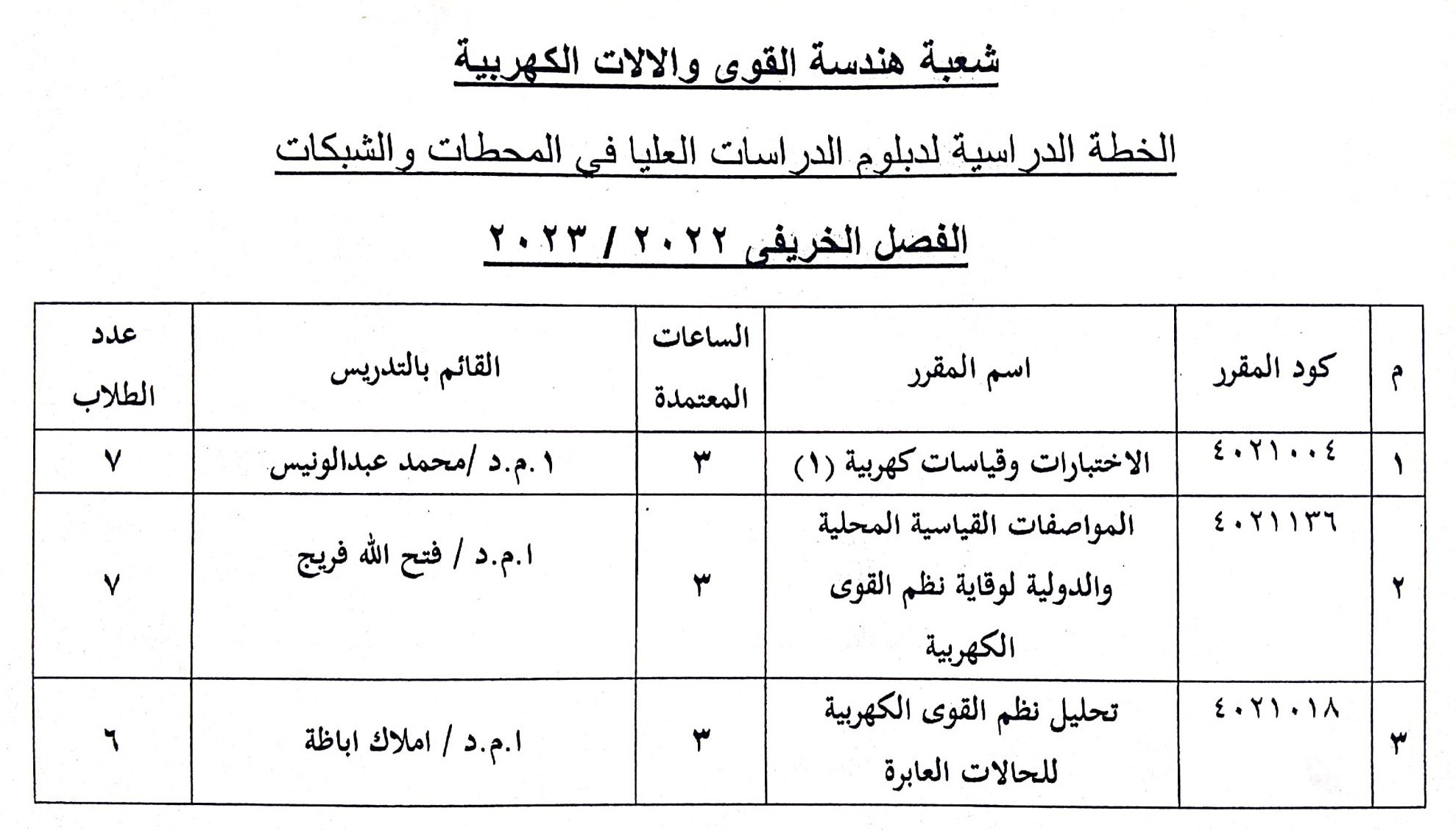 الخطة الدراسية للفصل الخريفي 2022/2023