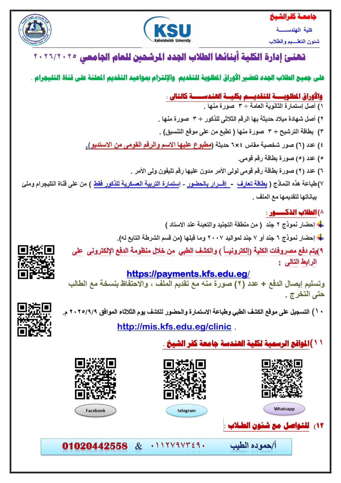 اعلان بدء التقديم للطلاب الجدد للعام الجامعي ٢٠٢٥-٢٠٢٦