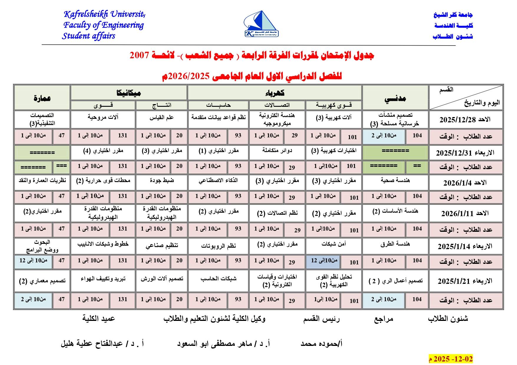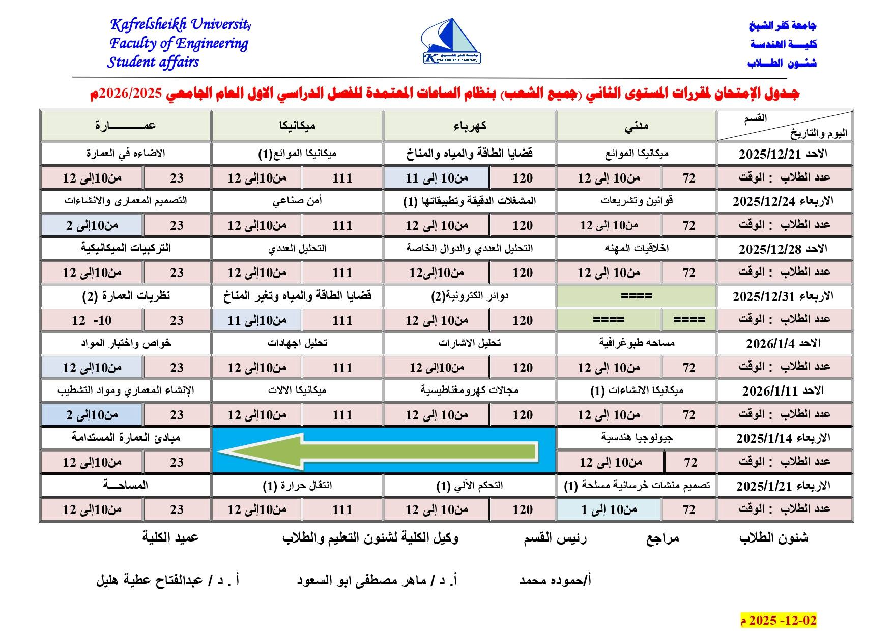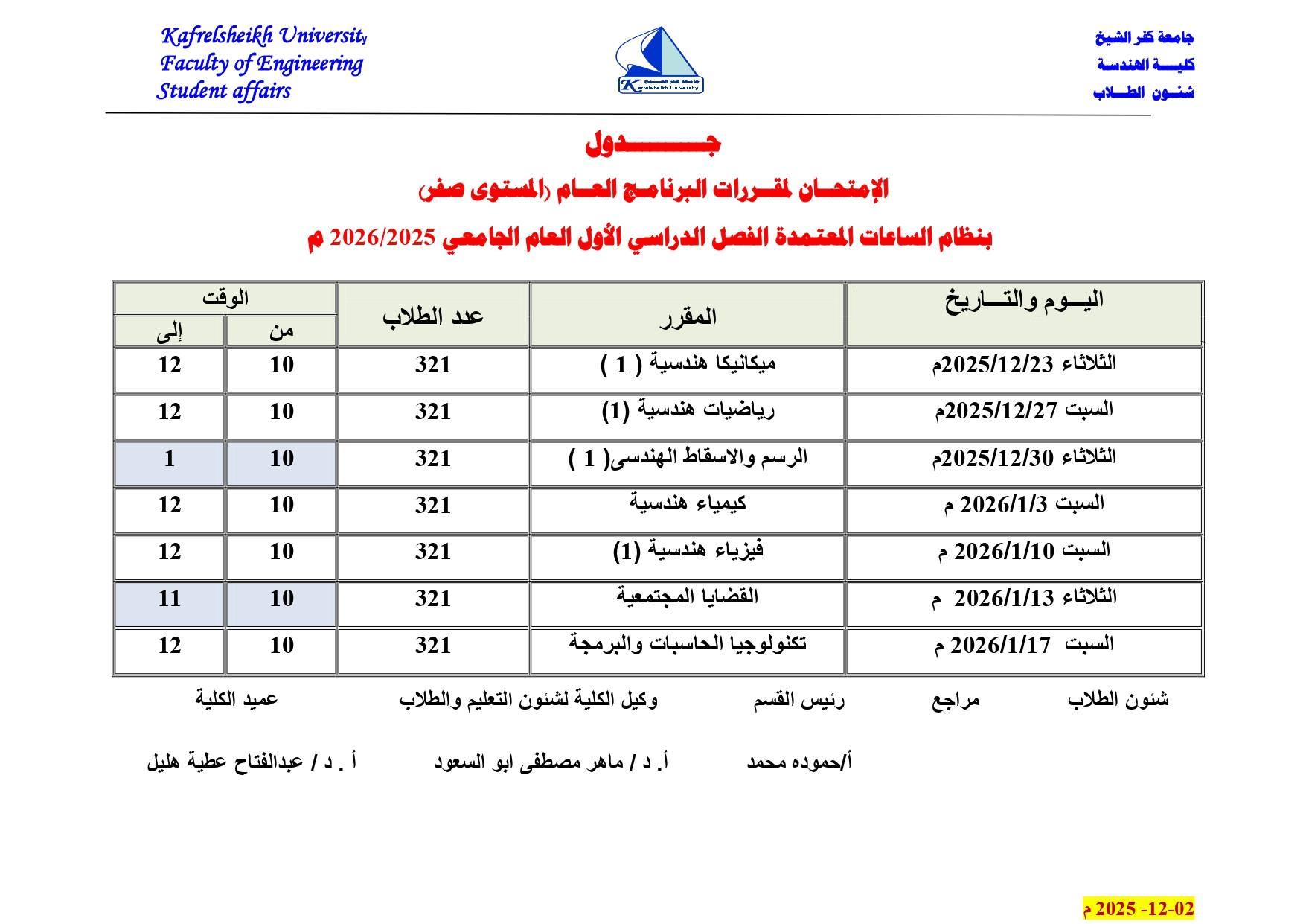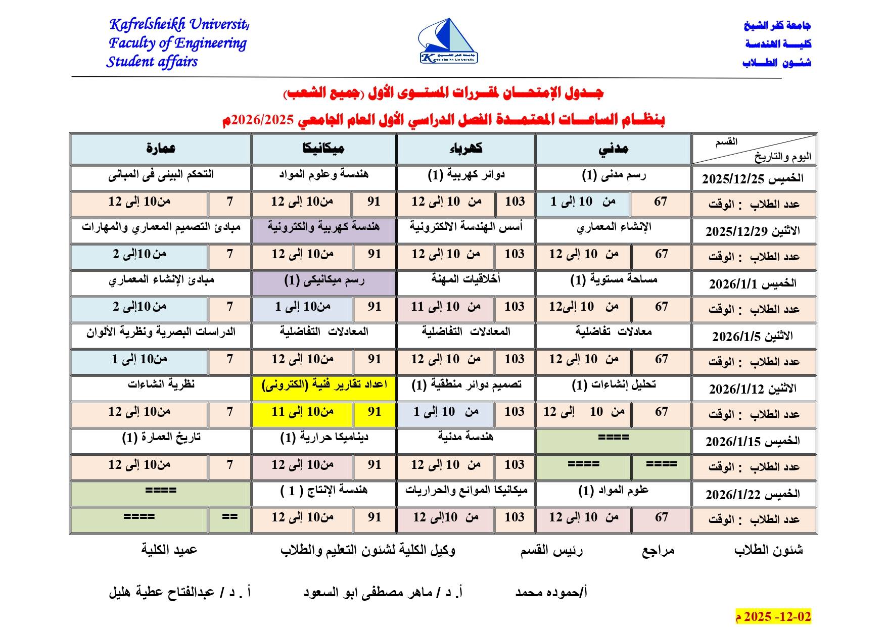 جداول امتحانات الفصل الدراسي الأول للعام الجامعي 2025-2026