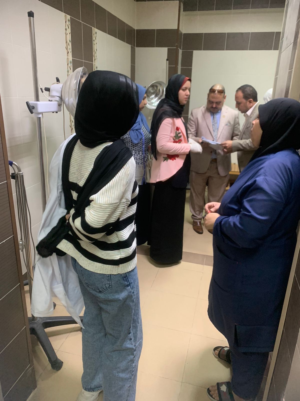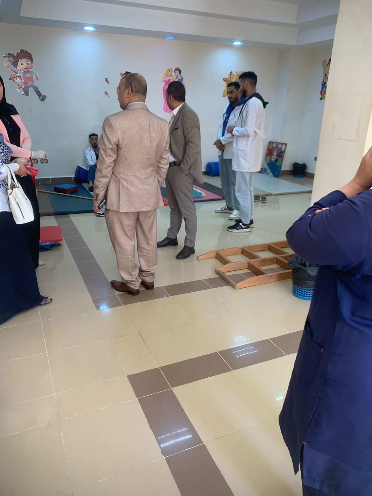 Within the framework of the directives of His Excellency Prof. Dr. Abdel Razek Desouky, President of the University, on the necessity of continuous field follow-up of all units and centers affiliated with the college and proposing out-of-the-box ideas to develop the financial resources of the college, Mr. Prof. Dr. Mahmoud Awida, Dean of the College, accompanied by Prof. Dr. Iman Abdel Fattah, Vice Dean of the College for Postgraduate Studies, and Mr. Mohamed Fathy Najm, Secretary of the College, visited the Rehabilitation and Care Center for the Injured affiliated with the college, where the Dean of the College listened to the opinions and impressions of the cases visiting the center, in addition to following up on the work of the interns and specialists at the center and emphasizing the specialists’ follow-up of the interns and the permanent and continuous supervision of the cases and providing all advice and consultations to provide a competitive treatment service. In the same context, His Excellency followed up on all the equipment at the center, including devices, and ensured their efficient and effective performance, and trained all the distinguished students to operate these devices under the supervision of the specialists, in addition to the necessity of operating all the broken devices and taking the necessary measures to do so as soon as possible, assigning the college secretary to take executive steps in this regard in coordination with the relevant authorities at the university.