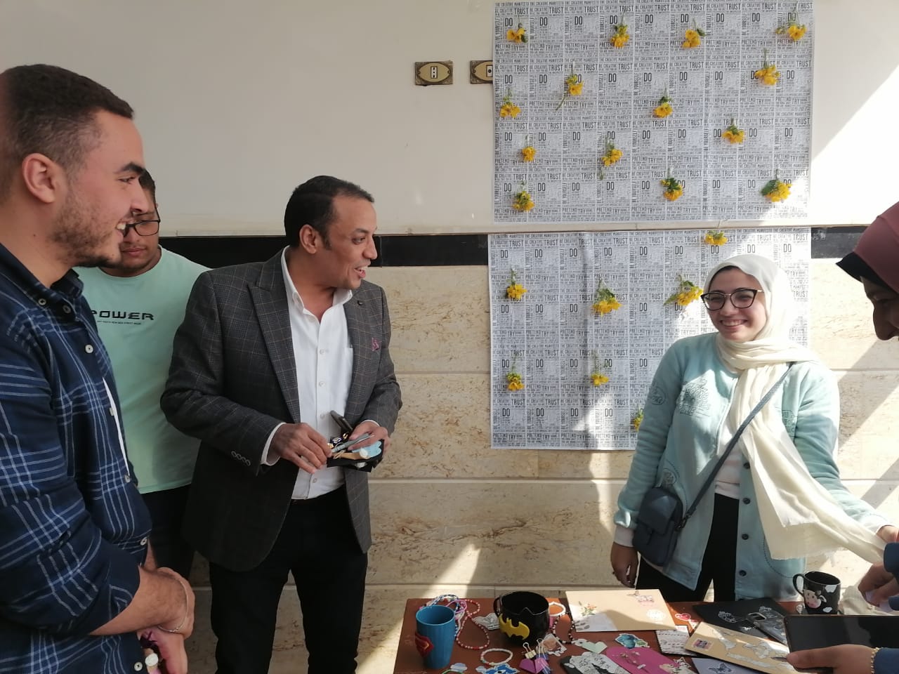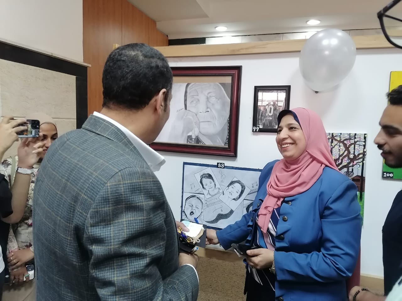 Under the patronage of Prof. Dr. Fayez Al-Shamy - Dean of the Faculty, Mrs. Prof. Iman Abdel-Fattah - Vice Dean for Education and Student Affairs, and Mr. Mohamed Fathy Negm - Secretary of the Faculty, an art exhibition was held today with the participation of artists in various faculties of the university and includes distinguished artworks using techniques: