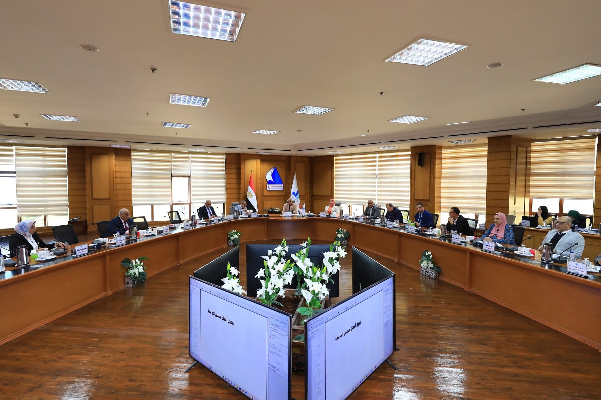عقد مجلس جامعة كفر الشيخ اجتماعه الشهري لشهر نوفمبر 2025، برئاسة الدكتور إسماعيل إسماعيل إبراهيم، القائم بعمل رئيس الجامعة، وبحضور السادة أعضاء المجلس، وذلك اليوم الثلاثاء الموافق 25 نوفمبر 2025، بقاعة الاجتماعات الكبرى بمقر الإدارة العامة للجامعة.