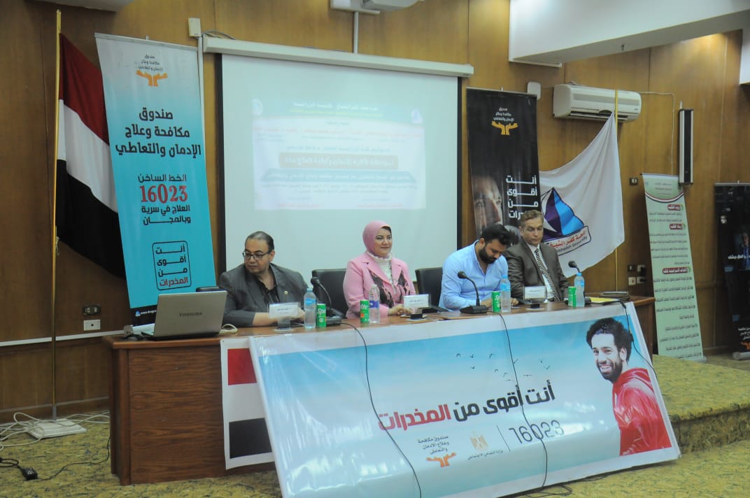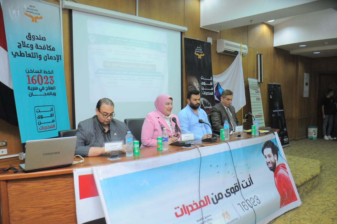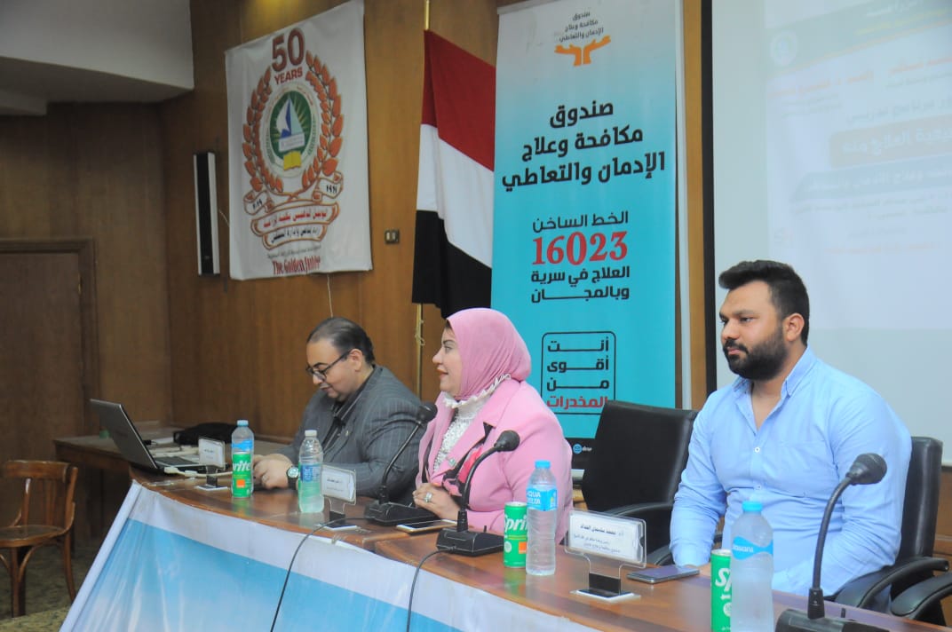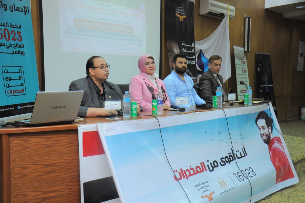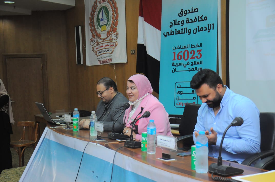 ومن جانبها أكدت الدكتور اماني شاكر نائب رئيس الجامعة لشئون خدمة المجتمع وتنمية البيئة، أن هناك العديد من المحاور يجب التمسك بها، منها تعاليم القيم التربوية، بجانب غرس المبادئ السليمة والصحيحة والقيم والفضيلة بين الأبناء، وتنفيذ مع التأكيد على تنفيذ قوانين مكافحة المخدرات، بالإضافة إلي تعميم مراكز علاج المدمنين، ومحاولة حل المشاكل الاجتماعية المسببة للإدمان.