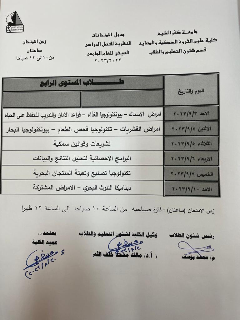 جدول امتحانات المستوي الرابع للفصل الدراسي الصيفي للعام الجامعي 2022/2023