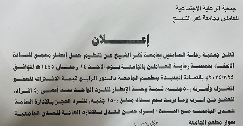 حفل افطار جماعي للاعضاء بجمعية رعاية العاملين بالجامعه