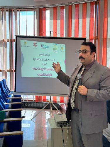 نظمت جامعة كفر الشيخ يوم الثلاثاء الموافق 22/10/2024، البرنامج الرئاسي (مودة) للحفاظ علي كيان الاسرة المصرية والذي ينفذ بالتعاون بين وزارة التعليم العالي والبحث العلمي ووزارة التضامن الاجتماعي، برعاية الاستاذ الدكتور عبدالرازق يوسف دسوقي رئيس جامعة كفر الشيخ، والاستاذ الدكتور إسماعيل إسماعيل إبراهيم نائب رئيس الجامعه للدراسات العليا والبحوث والمشرف على الكليه والاستاذ الدكتور محمد عبدالعال نائب رئيس الجامعة لشئون التعليم والطلاب، وإشراف الدكتور طارق عبدالرحمن المنسق الفني للبرنامج بالجامعة. حيث تم تنظيم وتنفيذ دورة تدريبية بكلية علوم الثروة السمكية والمصايد قام بتنفيذها الاستاذ الدكتور احمد مصطفى، وتنسيق الاستاذ الدكتور مالك محمد خلف الله وكيل الكليه لشئون التعليم والطلاب.