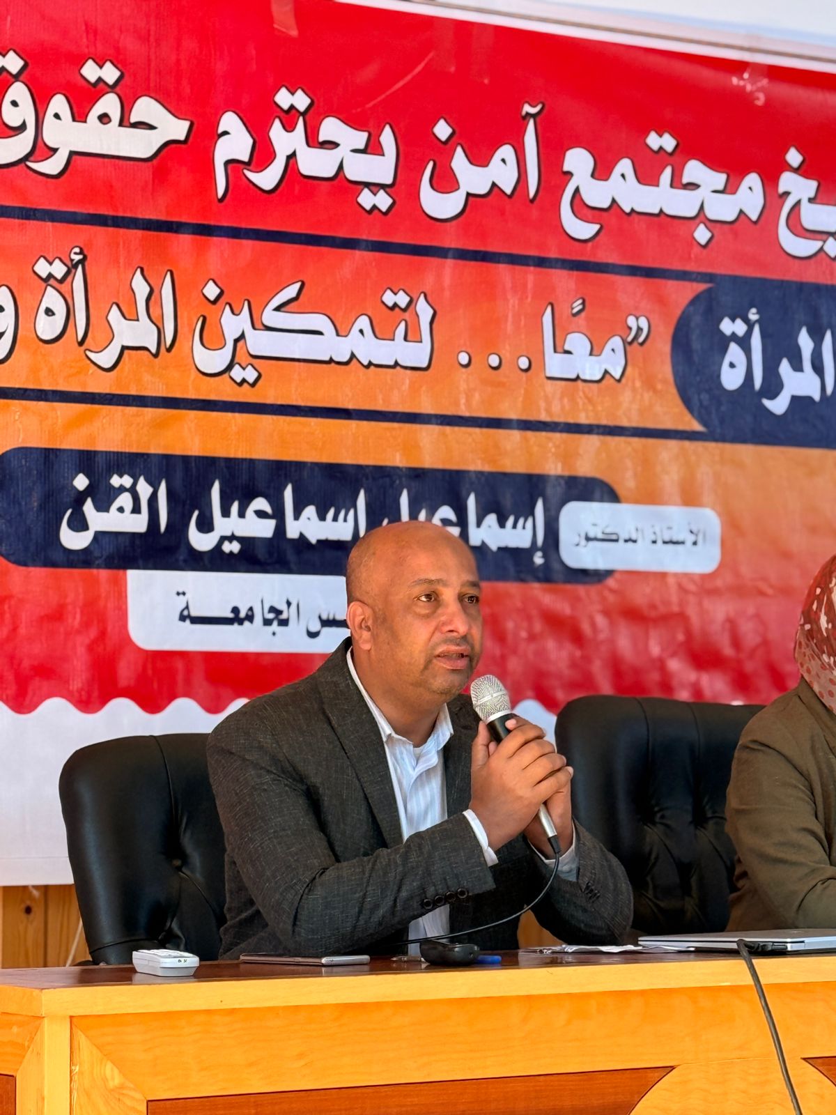 تحدث الاستاذ الدكتور/ راضي علي حول دور المرأة في المجتمع ما لها وما عليها وان الدولة منحت المرأة اهتماما كبيرا فجعلت منها الوزبرة والمدرسة والمهندسة والقاضية ..........الخ