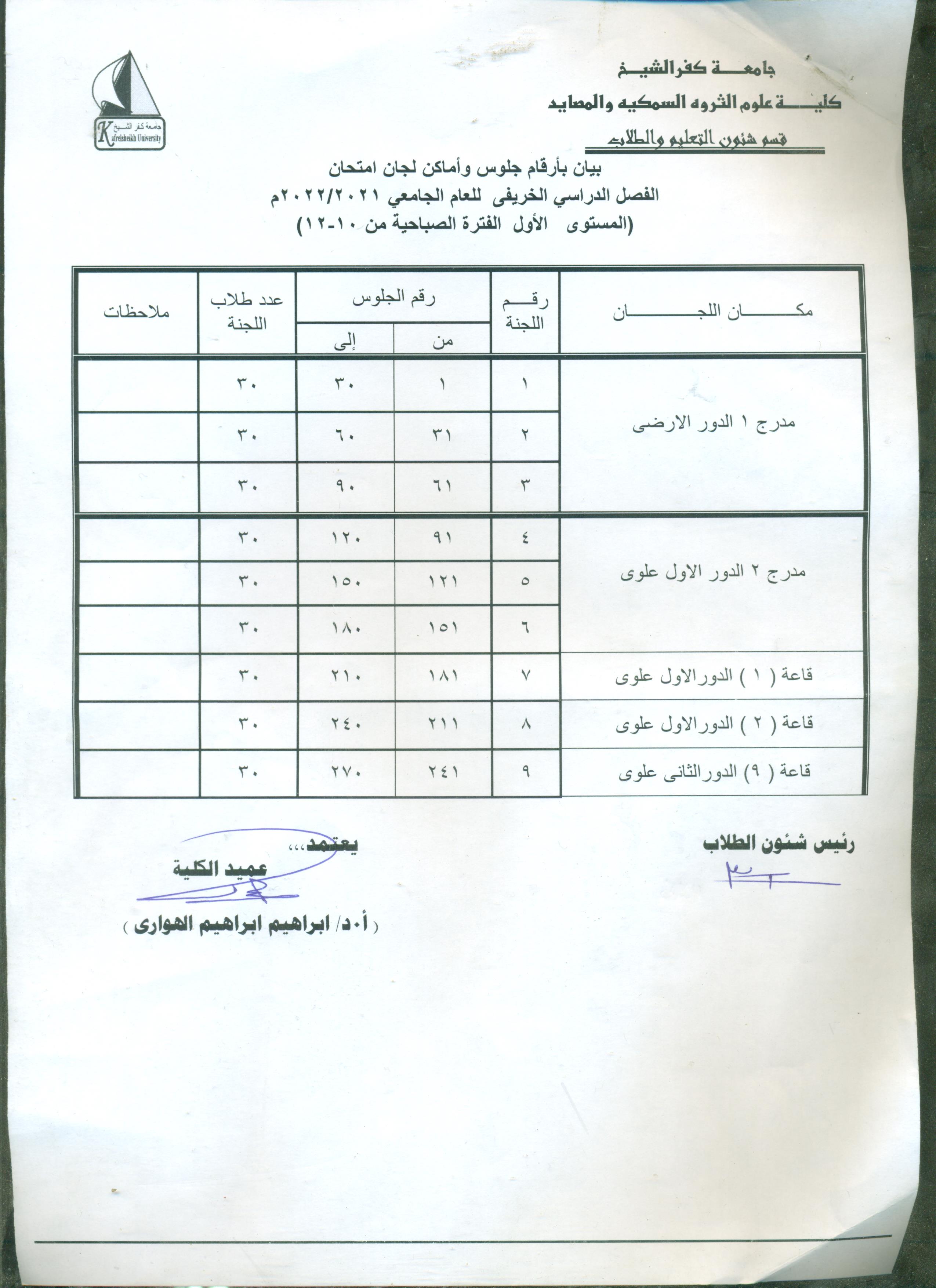 اماكن لجان امتحانات المستوي الاول الفصل الخريفي للعام الجامعي 2021/2022