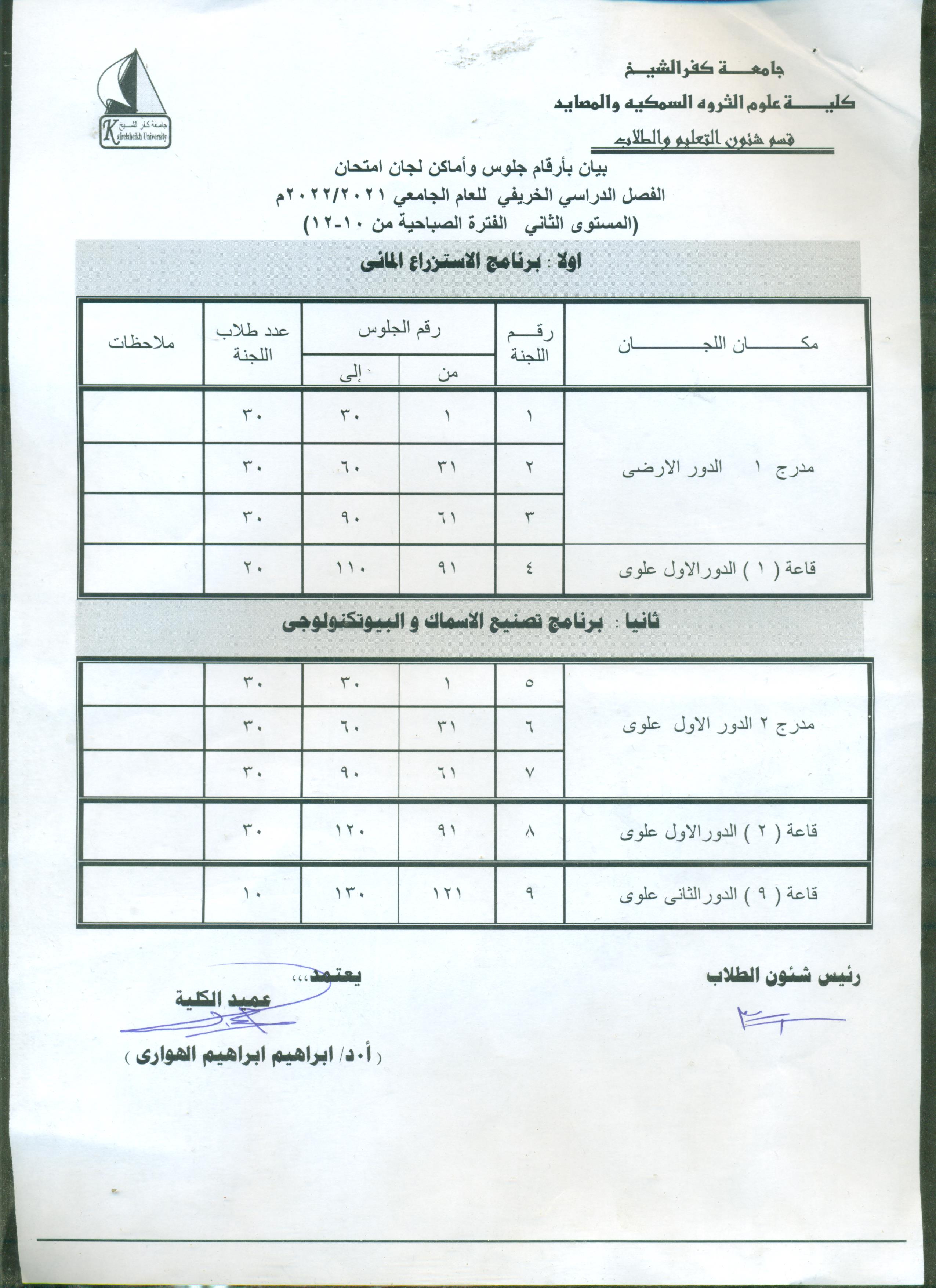 بيان بارقام جلوس واماكن لجان امتحانات الفصل الخريفي للعام الجامعي 2021/2022