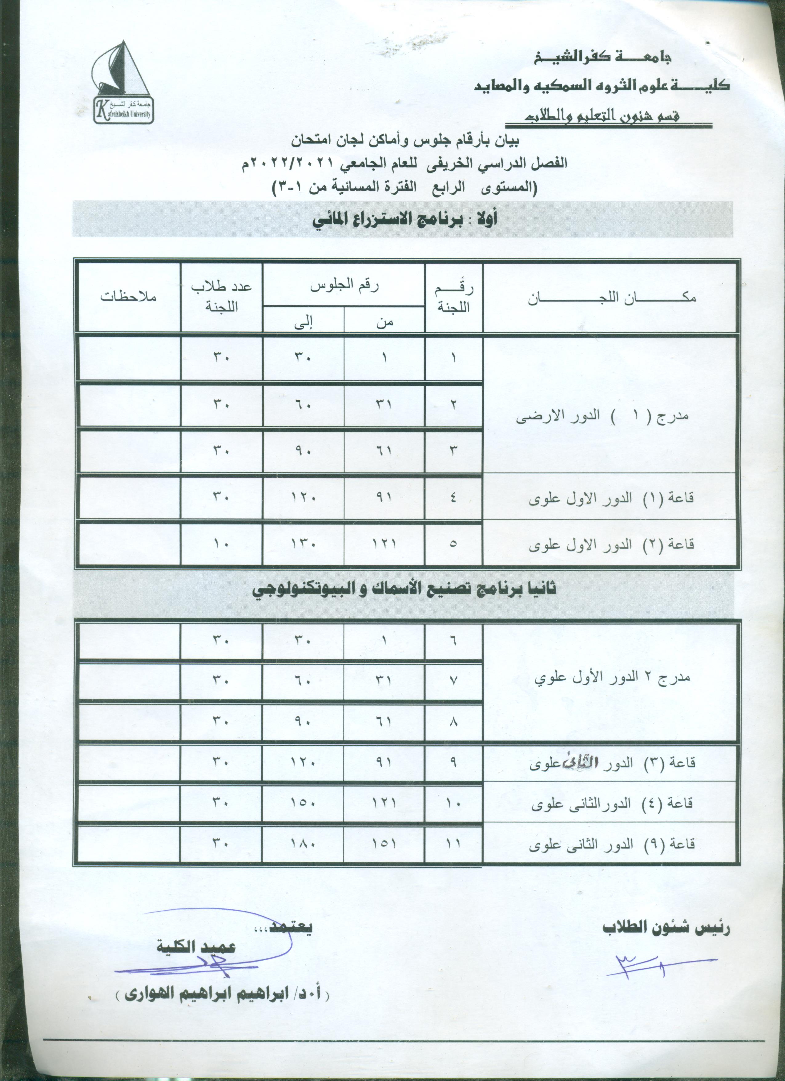 اماكن لجان امتحانات المستوي الرابع الفصل الخريفي للعام الجامعي 2021/2022