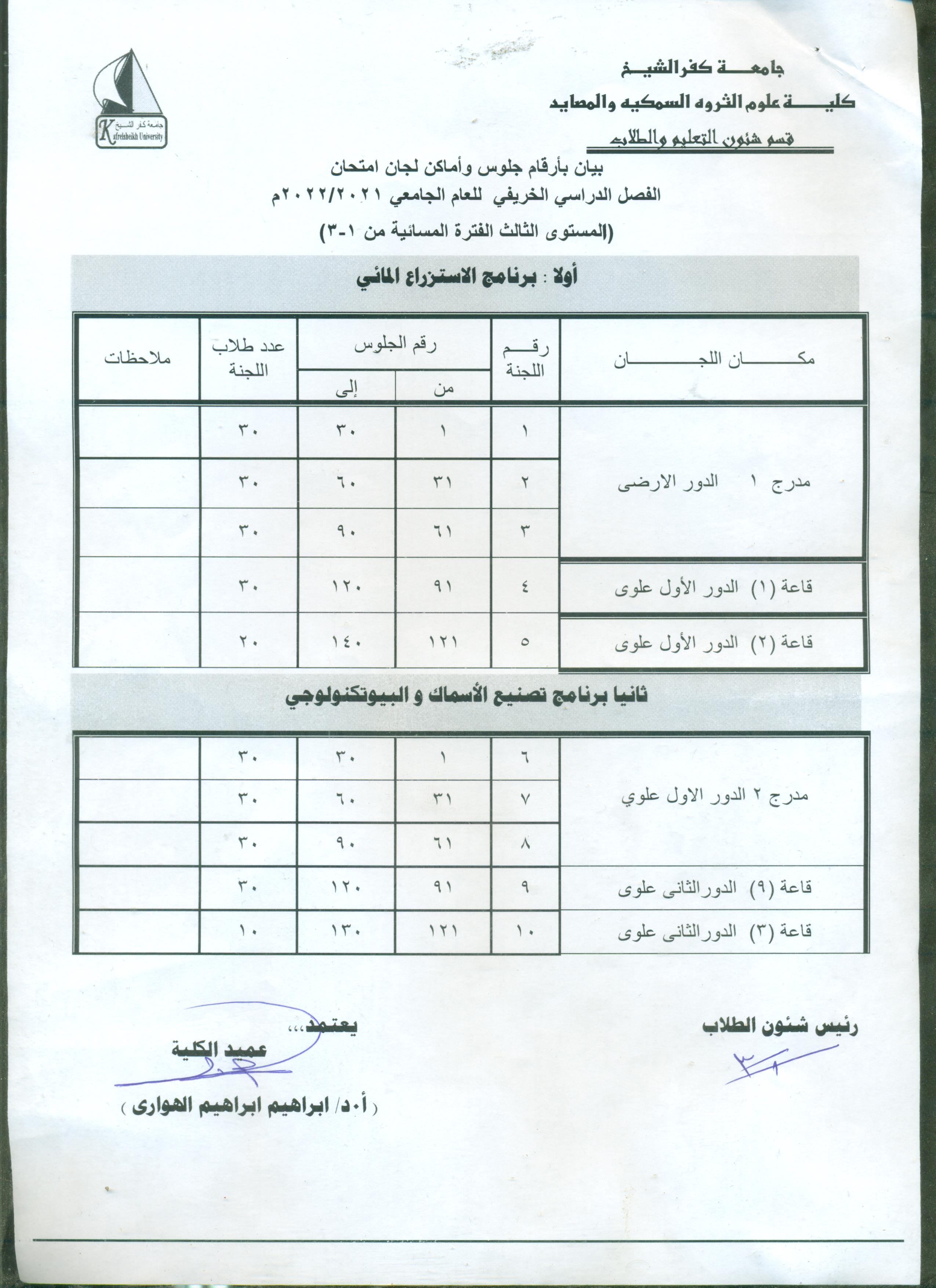 اماكن لجان امتحانات المستوي الثالث الفصل الخريفي للعام الجامعي 2021/2022