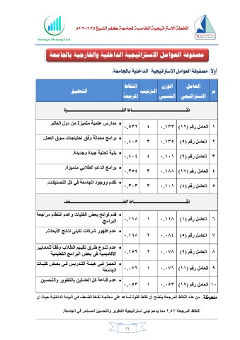 ةعماﳉاب ةيجراﳋاو ةيلخادلا ةيجيتاﱰسﻻا لماوعلا ةفوفصم