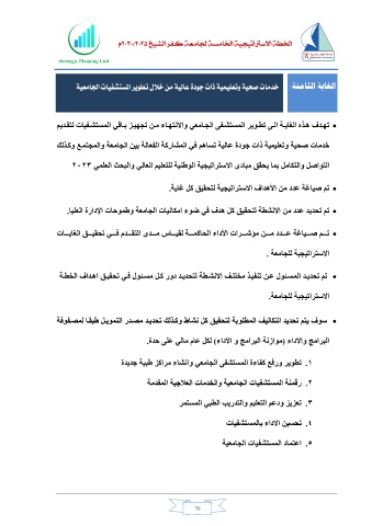 . ايلعلا ةرادﻹا تاحومطو ةعماجلا تايناكما ءوض يف فده لك قيقحتل ةطشنﻻا نم د دع ديدحت مت