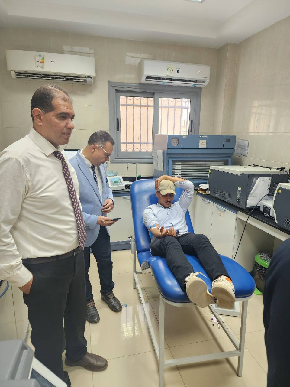حملة للتبرع بالدم داخل بنك الدم، بمشاركة طلاب دورة التربية العسكرية