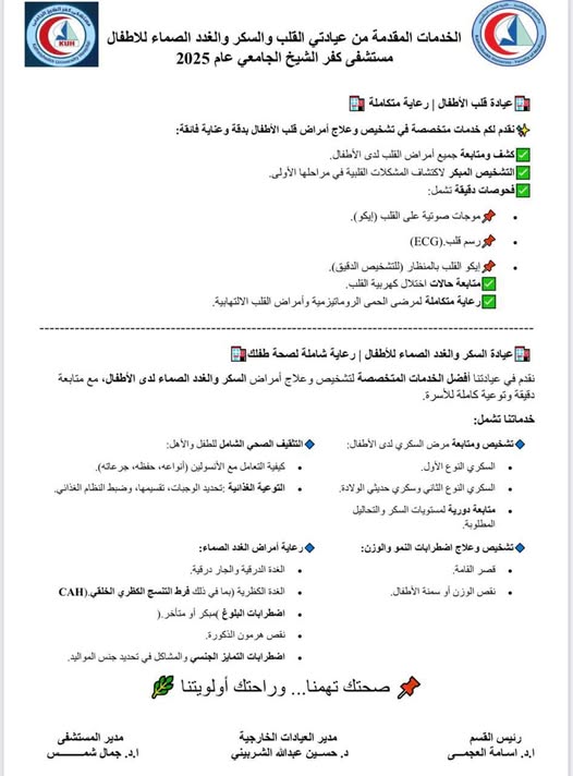 الخدمات المقدمة من عيادتي القلب والسكر والغدد الصماء للأطفال