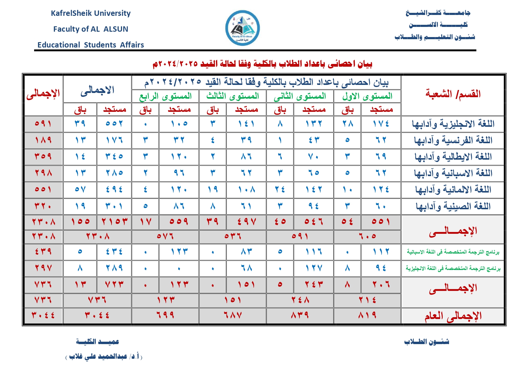 بيان إحصائي للخريجين للعام الجامعي 2024-2025م