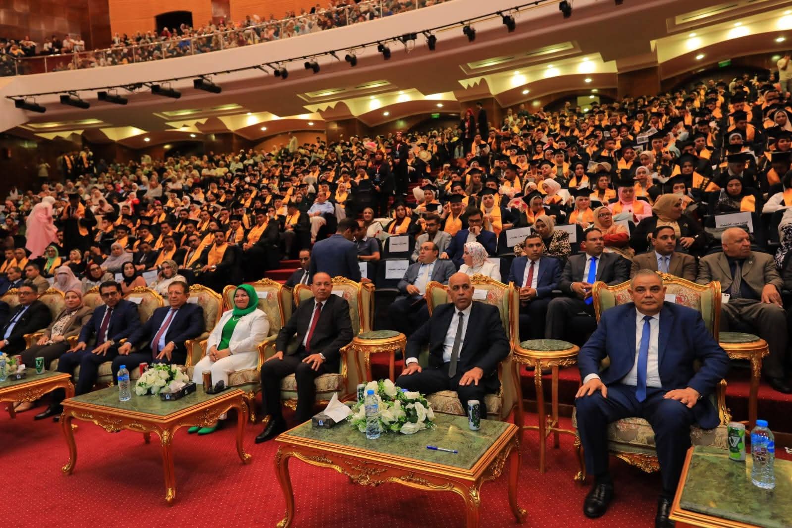 وفى نهاية كلمته أكد الدكتور إسماعيل إسماعيل ابراهيم، أننا جميعاً أعضاء هيئة التدريس والهيئة المعاونة والجهاز الإداري والطلاب الخريجين وأسرهم، نقف صفاً واحداً خلف القيادة السياسية الرشيدة الرئيس عبد الفتاح السيسي رئيس الجمهورية، من أجل رفعة وتقدم وطننا الغالي مصر.