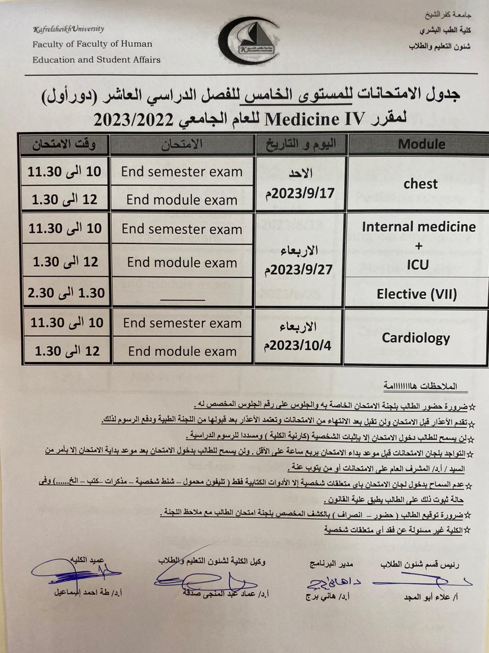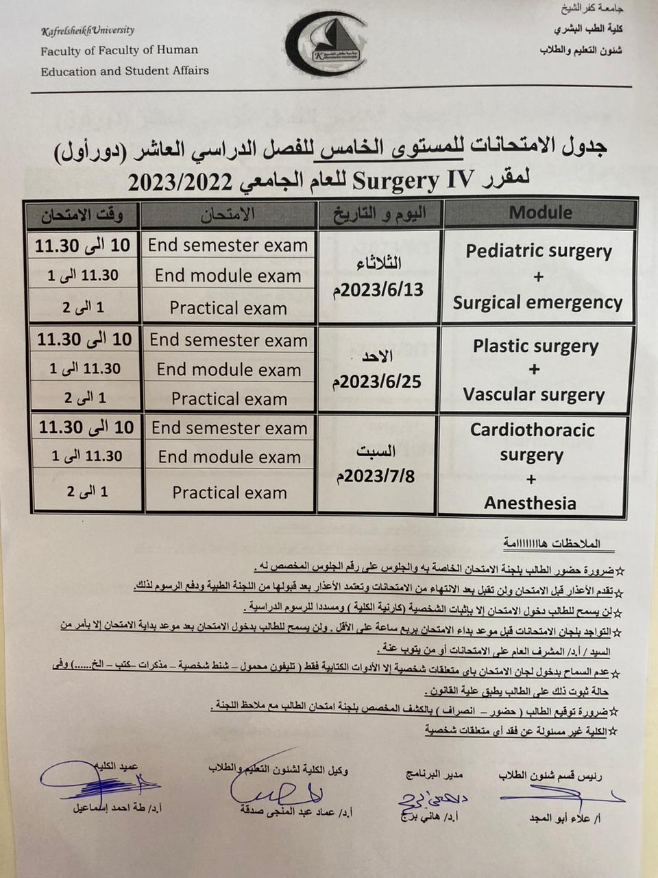 جدول الامتحانات المستوي الخامس الفصل الدراسي العاشر للعام الجامعي 2022/2023