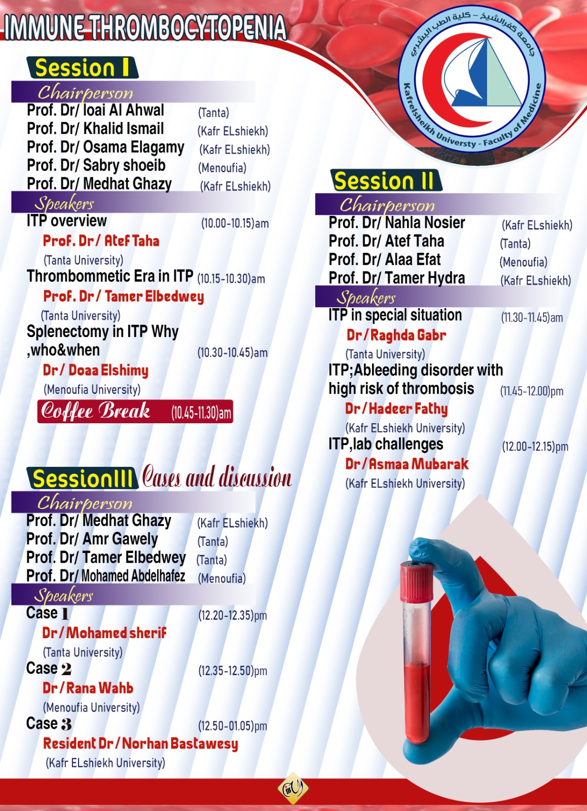 وبحضور كلا من: ا.د / لؤي الاحول رئيس قسم الباطنه جامعة طنطا ا.د / مدحت غازي رئيس قسم الباطنه جامعة كفرالشيخ ولفيف من اساتذه الباطنه وأمراض الدم بطب المنوفيه وطنطا