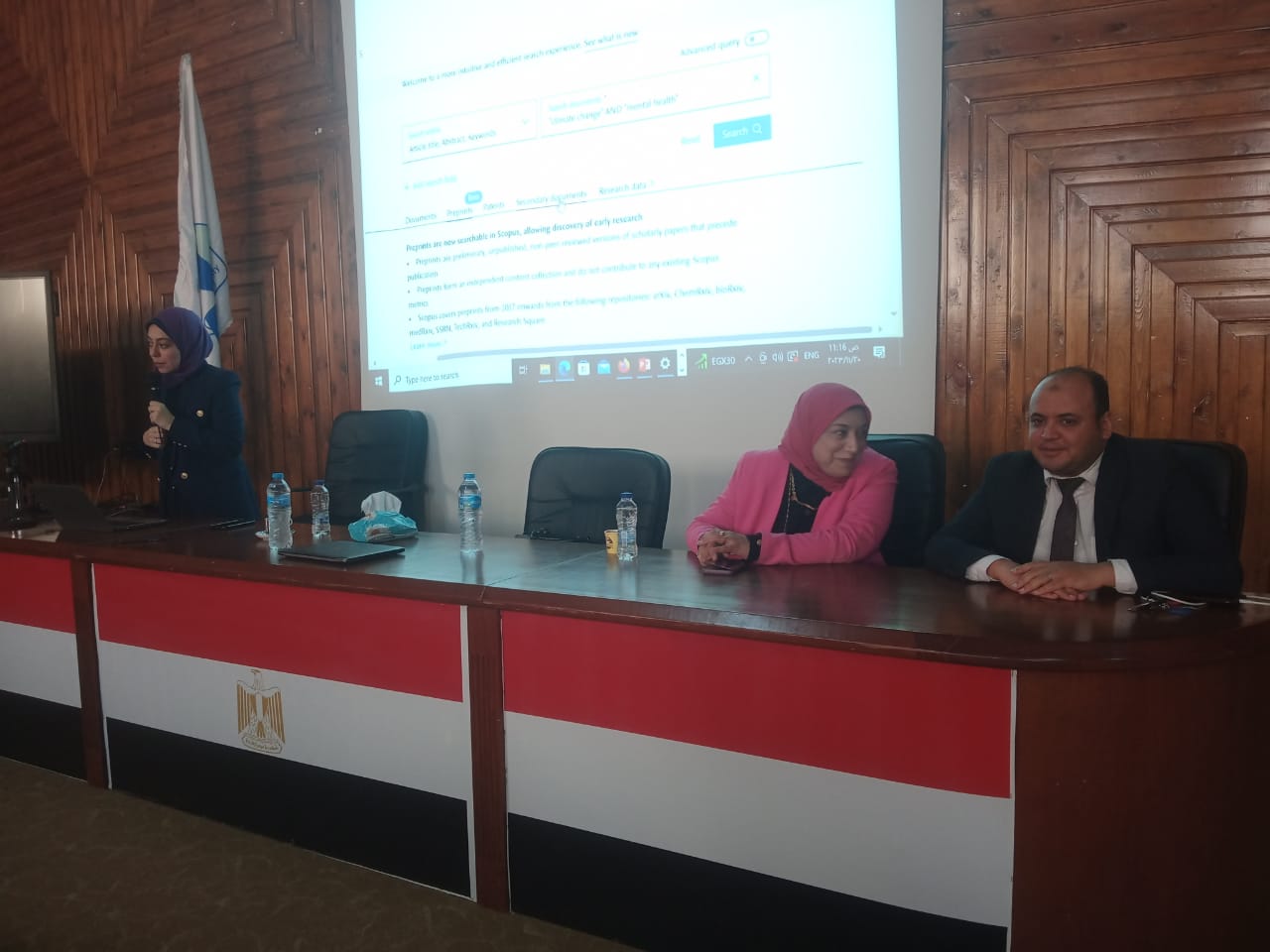 استضافت كلية الطب البشري الاثنين الموافق 20 نوفمبر 2023 نهاية ورشة عمل التي تهدف إلي رفع الوعي وتسهيل الوصول للمعلومات من خلال بنك المعرفة المصري وكذلك كيفية البحث بقواعد البيانات المختلفة والحصول علي المجلات العلمية المفهرسة .