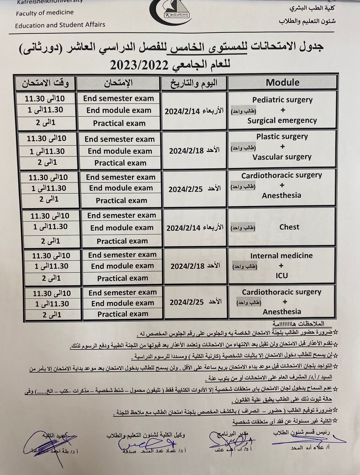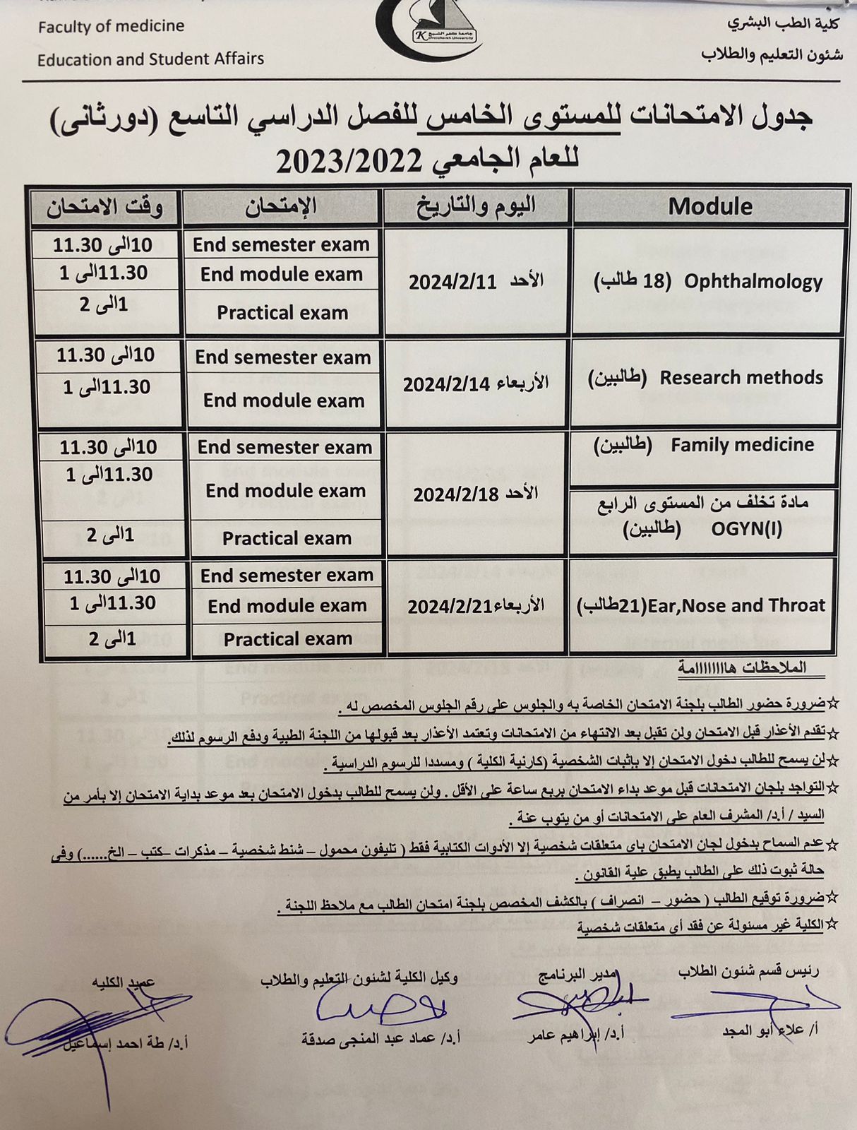 جدول امتحانات المستوي الخامس الدور الثاني للعام الجامعي 2022/2023