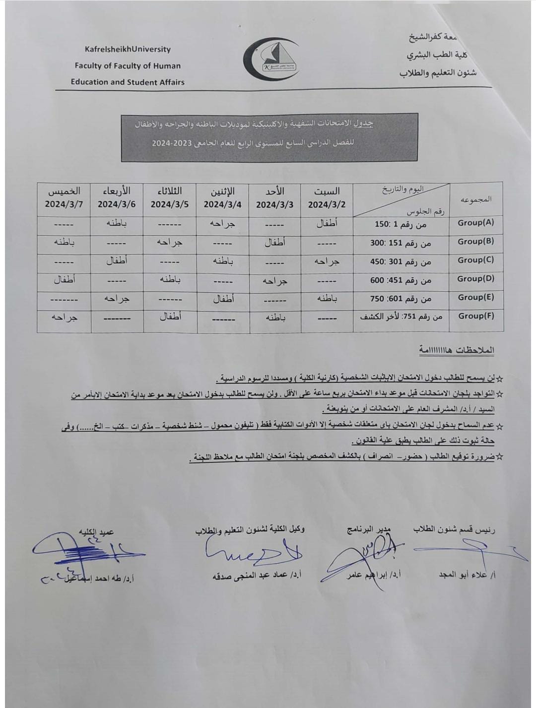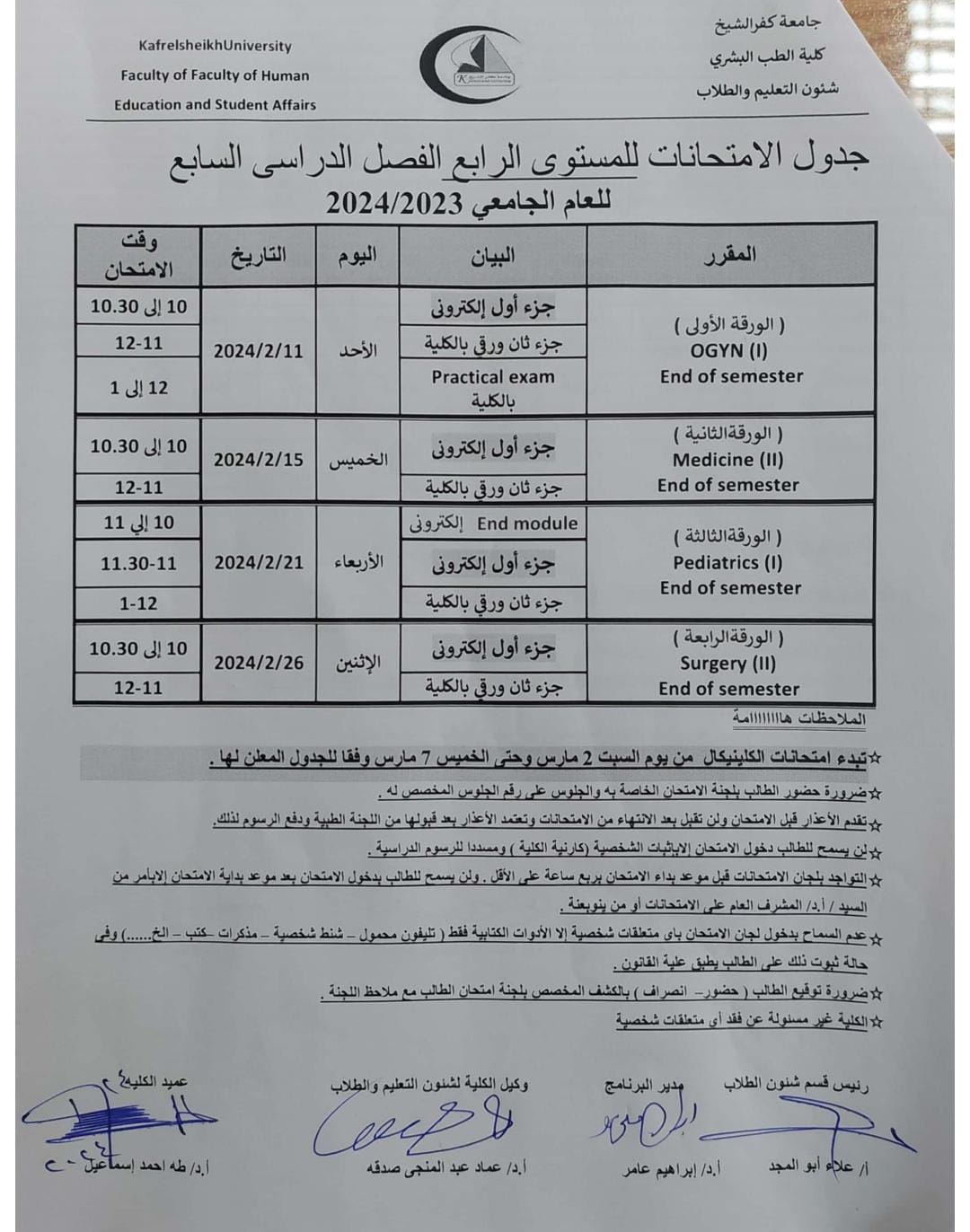جدول امتحانات المستوي الرابع العام الجامعي 2023/2024