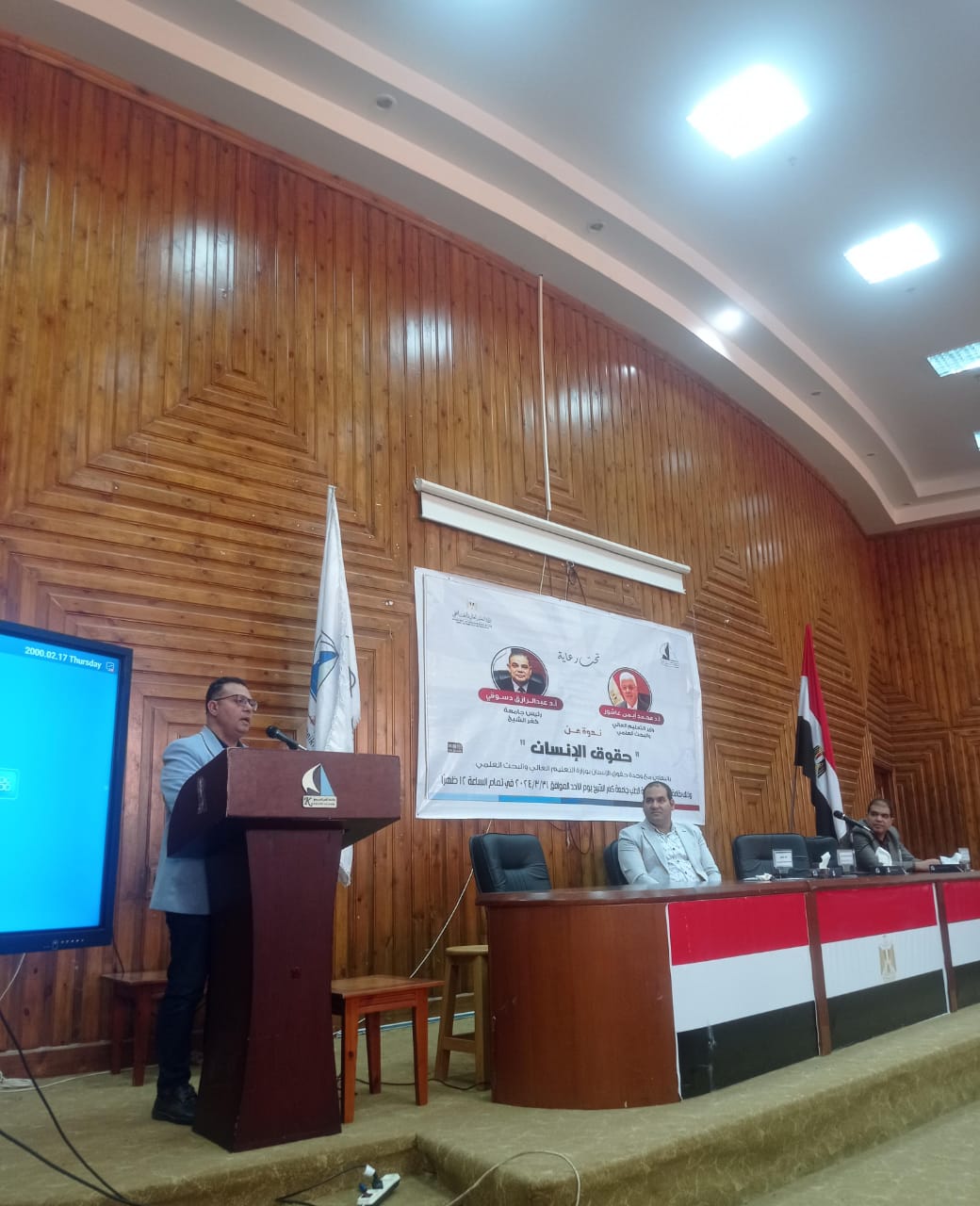 نظمت جامعة كفر الشيخ، ندوة بعنوان "حقوق الإنسان" بالتعاون مع وحدة حقوق الانسان بوزارة التعليم العالي والبحث العلمي، برعاية الدكتور ايمن عاشور وزير التعليم العالي والبحث العلمي، والدكتور عبد الرازق دسوقي رئيس جامعة كفر الشيخ، والتى عقدت بكلية الطب البشري، وباستضافة كريمة من الدكتور طه اسماعيل عميد الكلية وبحضور الدكتور مصطفي صبحي منسق وحدة حقوق الإنسان بالجامعة.