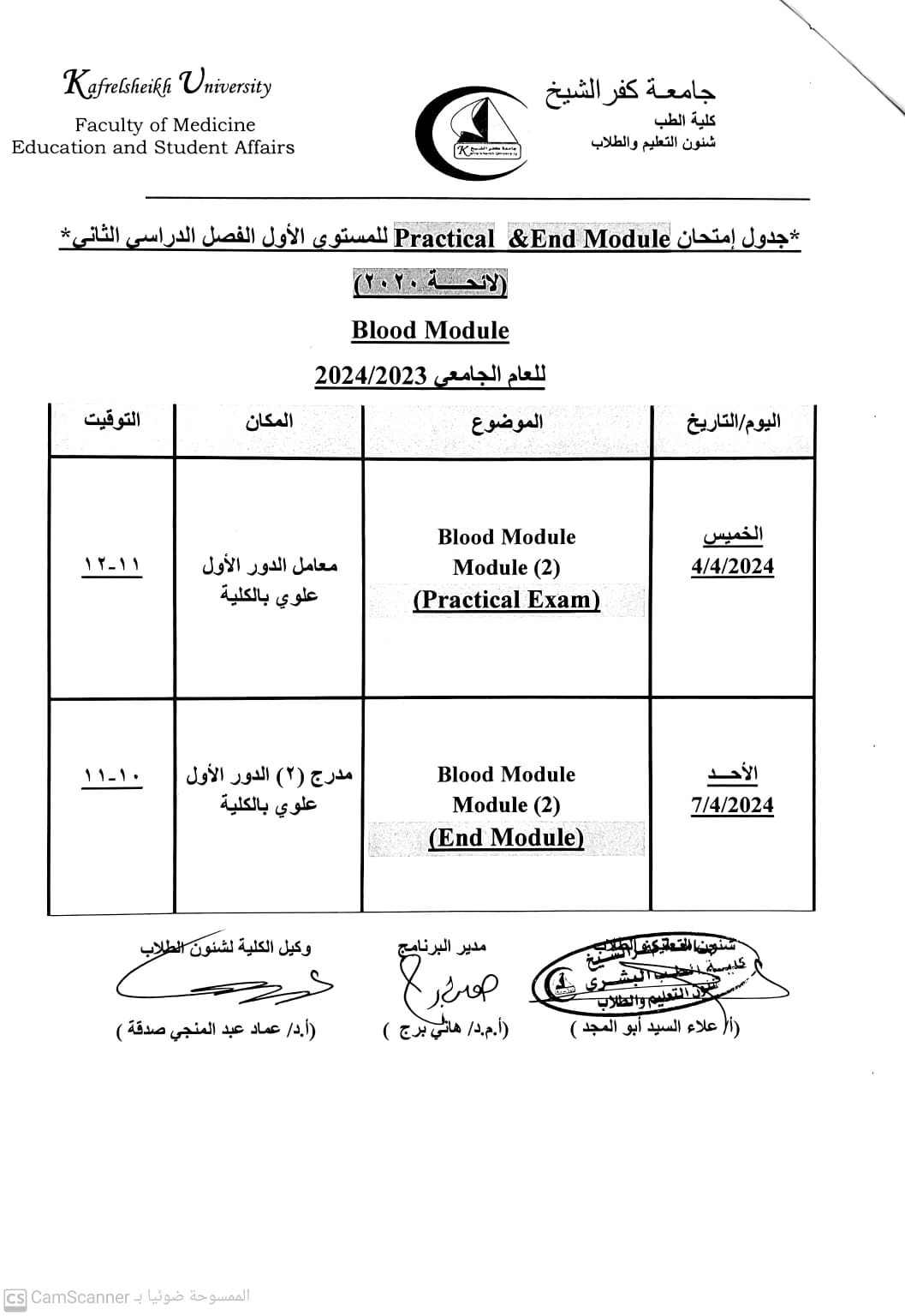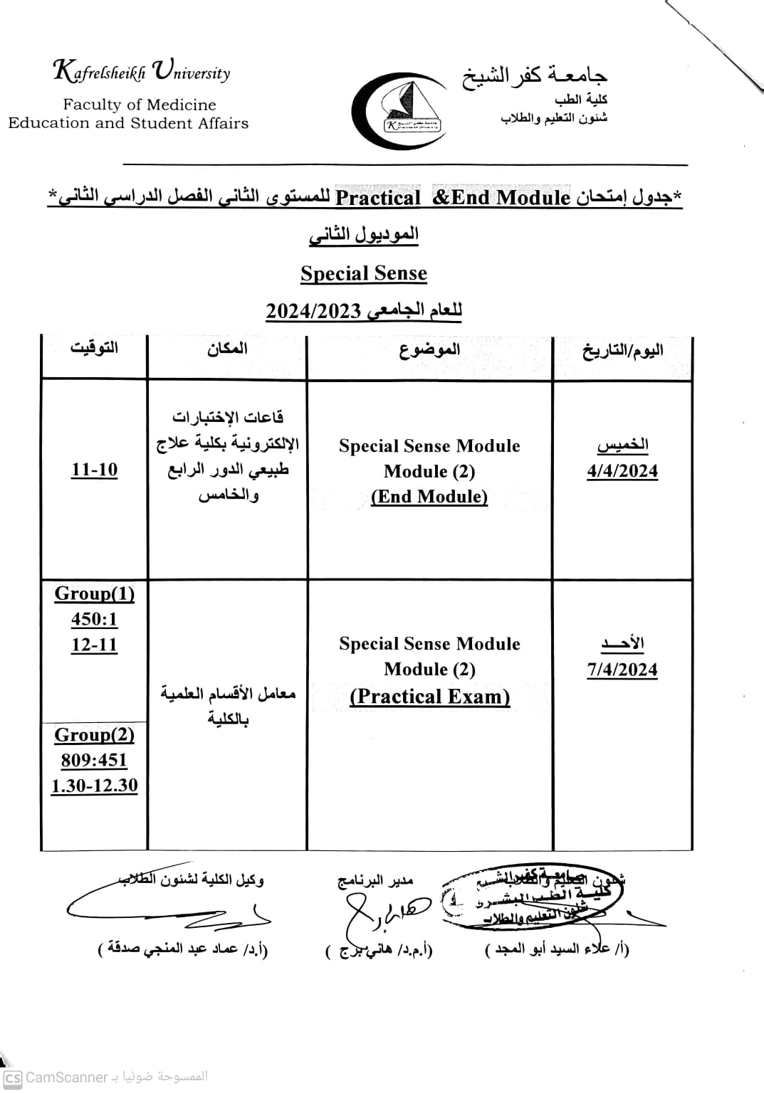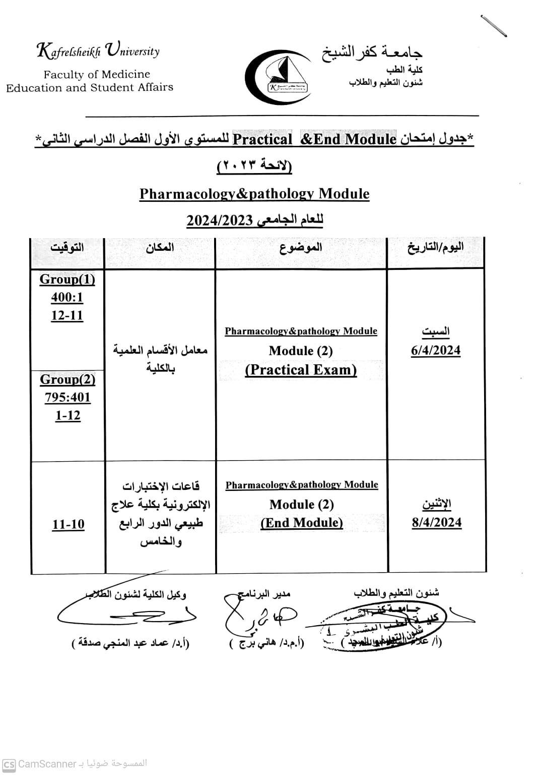جدول امتحانات العملي والاندموديول للمستوي الاول والثاني