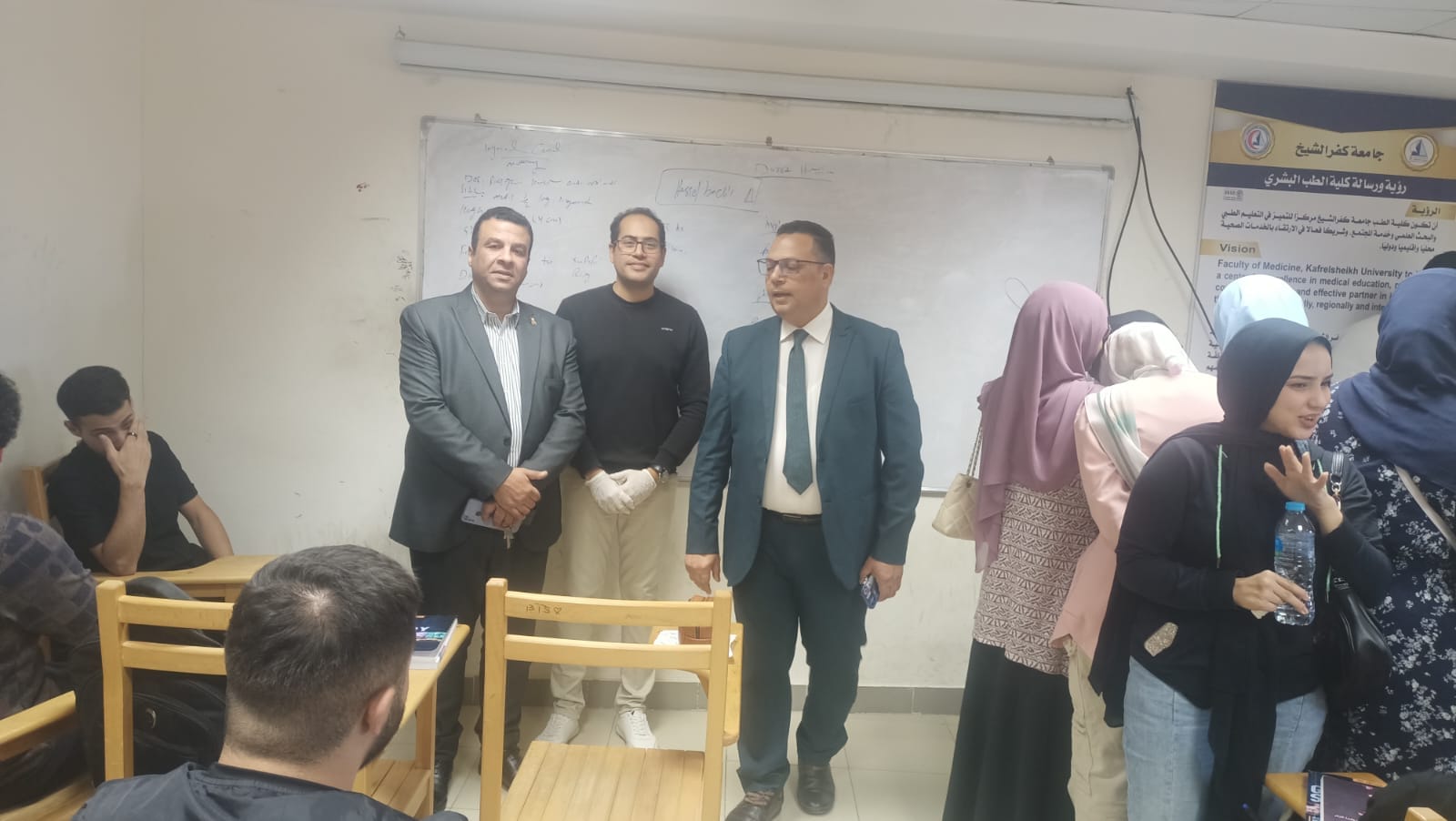 مرور الاستاذ الدكتور طه اسماعيل عميد الكلية والاستاذ الدكتور حاتم الجوهري وكيل الكلية لشئون التعليم والطلاب علي قاعات التدريس العملي والاطمئنان علي سير العملية التعليمية