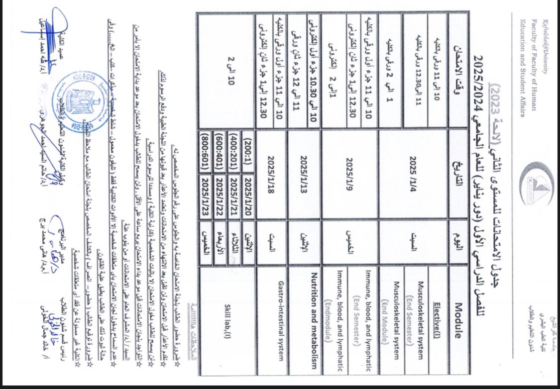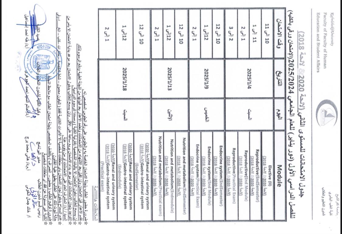 جداول الامتحانات المستوي الثاني للعام الجامعي 2024/2025