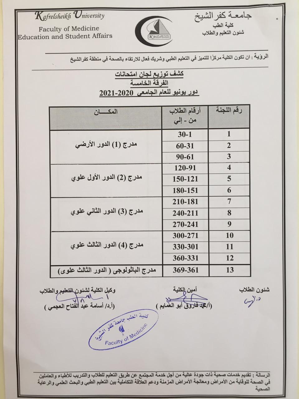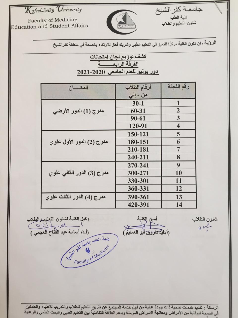 اماكن وتوزيع اللجان للفرقه الرابعه والخامسه