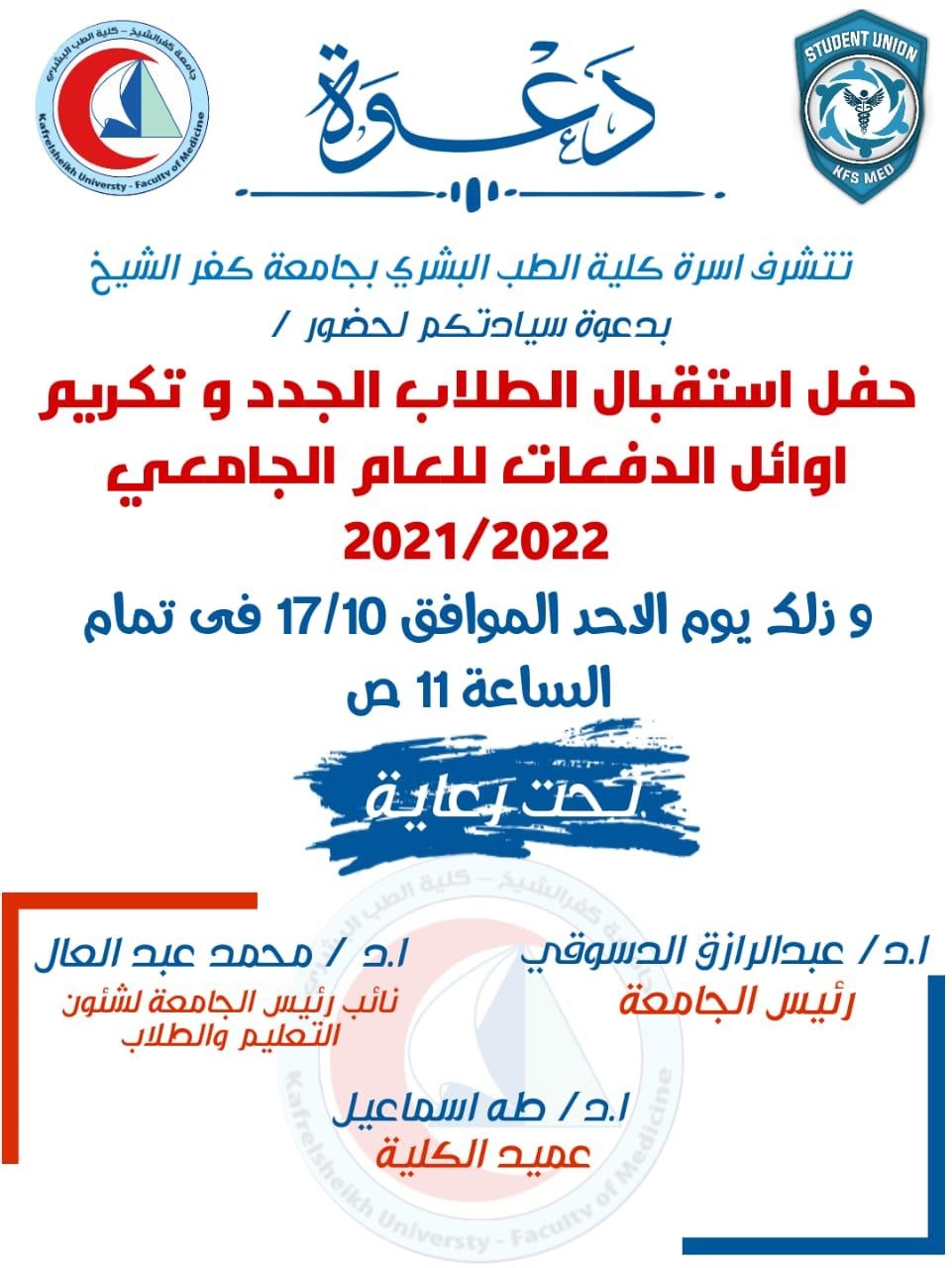 حفل استقبال الطلاب الجدد وتكريم اوائل الدفعات للعام الجامعي 2021-2022