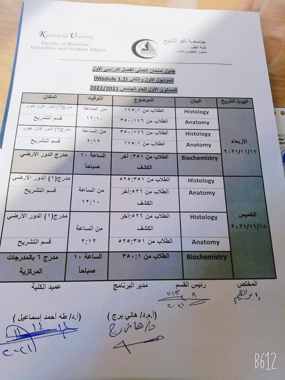 جدول امتحان العملي الموديول الاول والثاني المستوي الأول للعام الجامعي 2022/2021