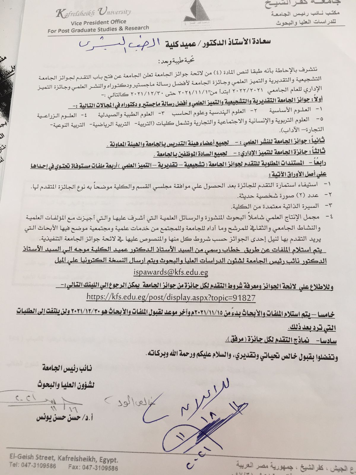 بداية تقديم الملفات لجوائز الجامعه التشجيعية وجوائز النشر العلمي والتميز الاداري