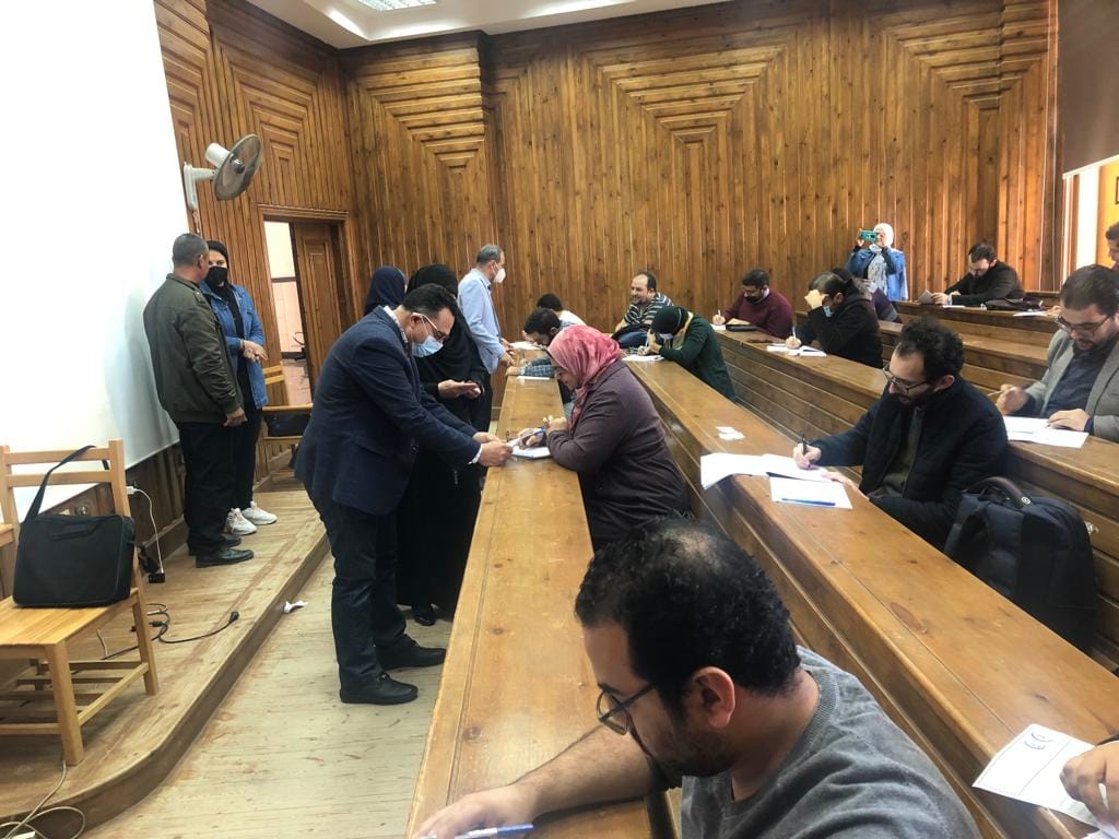 تفقد السيد الاستاذ الدكتور / طه اسماعيل عميد الكلية امتحانات الدراسات العليا لاول يوم في امتحانات الدكتوراه بالتخصصات المختلفه وبرفقته عميد كلية التمريض واستاذ الهستولوجي بالكليه ووكيل الكلية لشؤون التعليم والطلاب