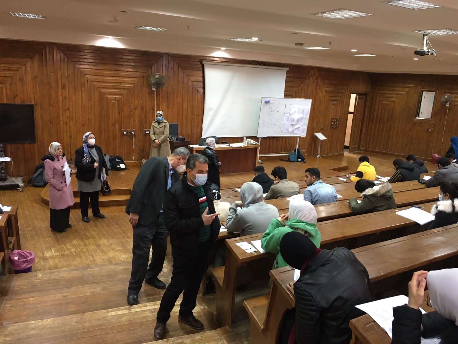 تفقد السيد الاستاذ الدكتور/ محمد عبد العال نائب رئيس الجامعه لشؤون التعليم والطلاب برفقته السيد الاستاذ الدكتور/طه اسماعيل عميد الكليه امتحانات المستوي الأول اليوم السبت الموافق 29/1/2022 واطمأنوا سيادتهم علي حسن سير أعمال الامتحانات دون أي مشاكل او عقبات وحثوا الطلاب علي الالتزام بتطبيق الإجراءات الاحترازية لمواجهه فيروس كورونا مع خالص تمنياتهم لجميع الطلبة والطالبات بالنجاح والتوفيق.