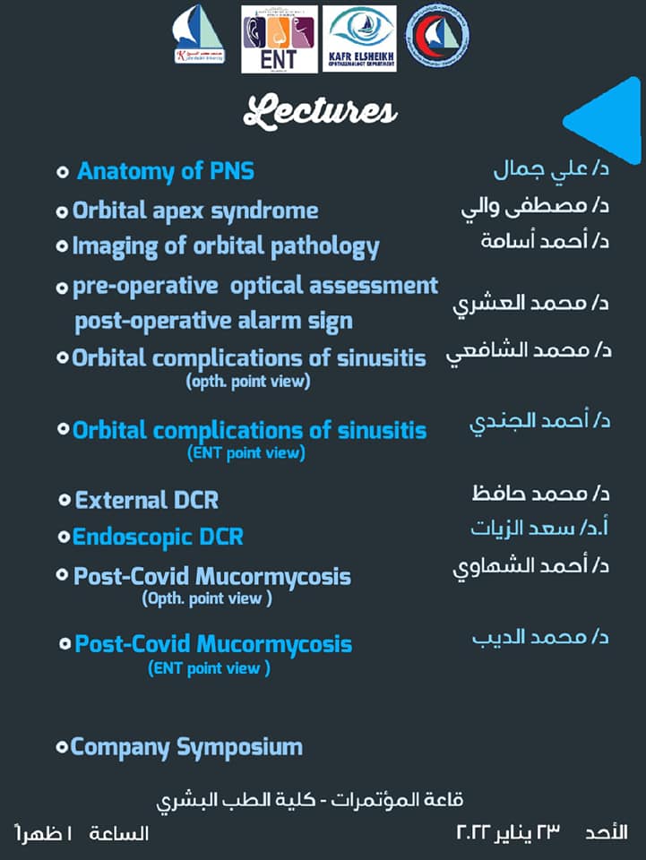 دعوه لحضور اليوم العلمي المشترك بين قسمي الأنف والاذن والحنجرة وطب وجراحه العيون
